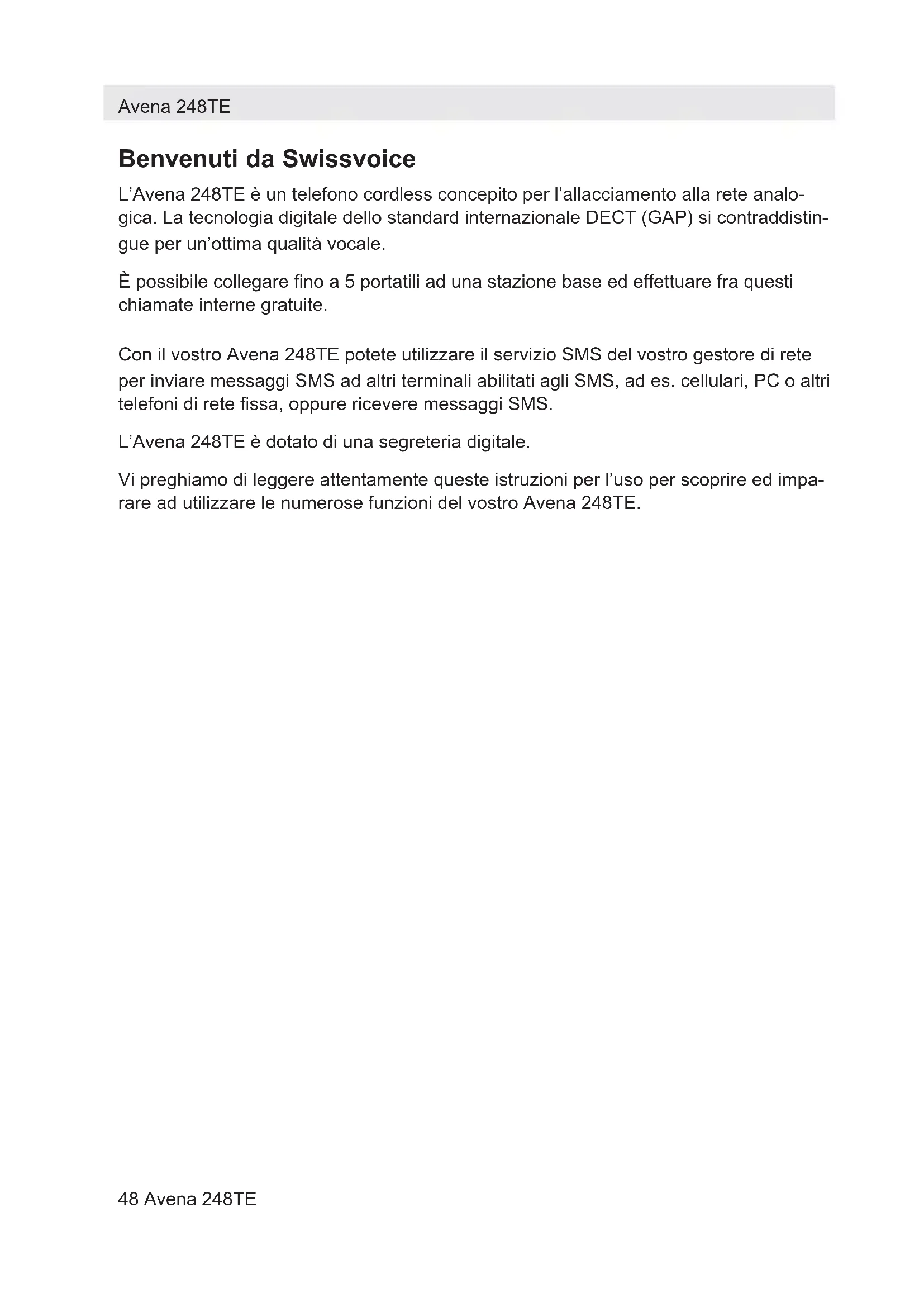 Trova gratuitamente il manuale del dispositivo Avena 248TE SWISSVOICE in formato PDF.