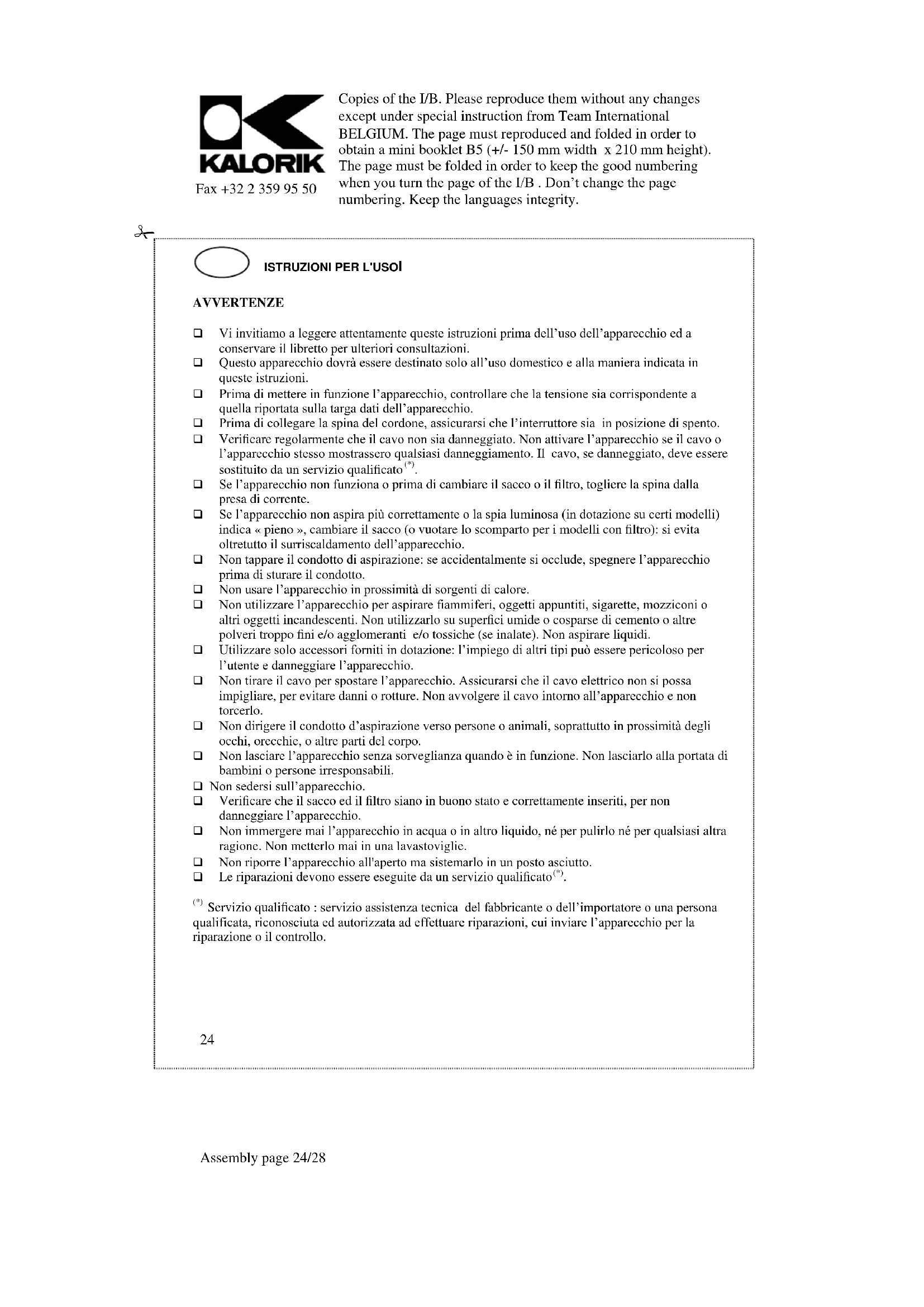 - L'apparecchio non richiede manutenzione particolare tranne il cambiamento dei filtri e dei sacchi di carta come sopra indicato.
