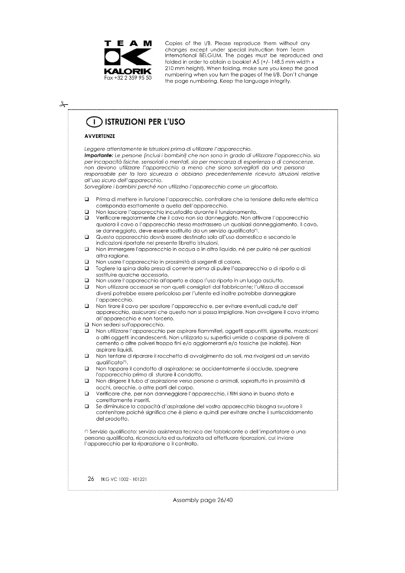 MANUALE UTENTE TKG VC 1002 KALORIK