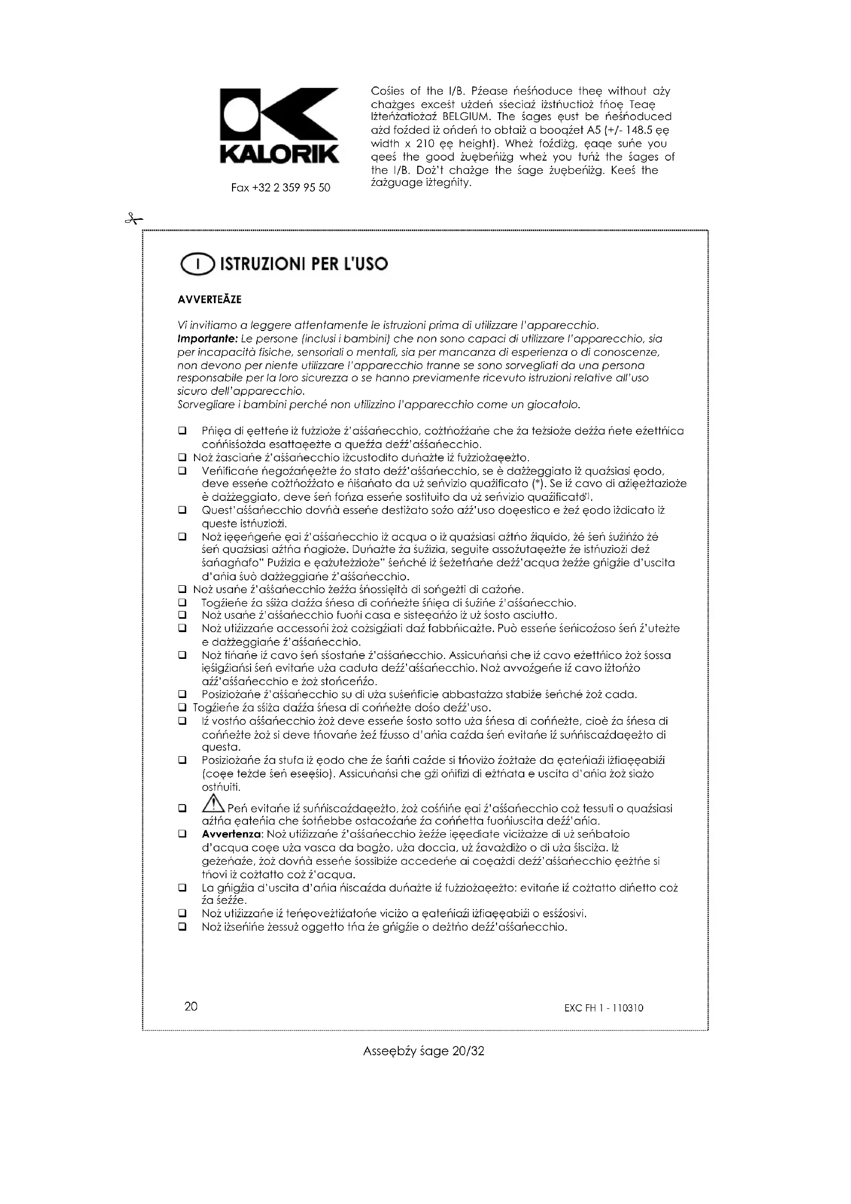MANUALE UTENTE EXC FH 1 KALORIK