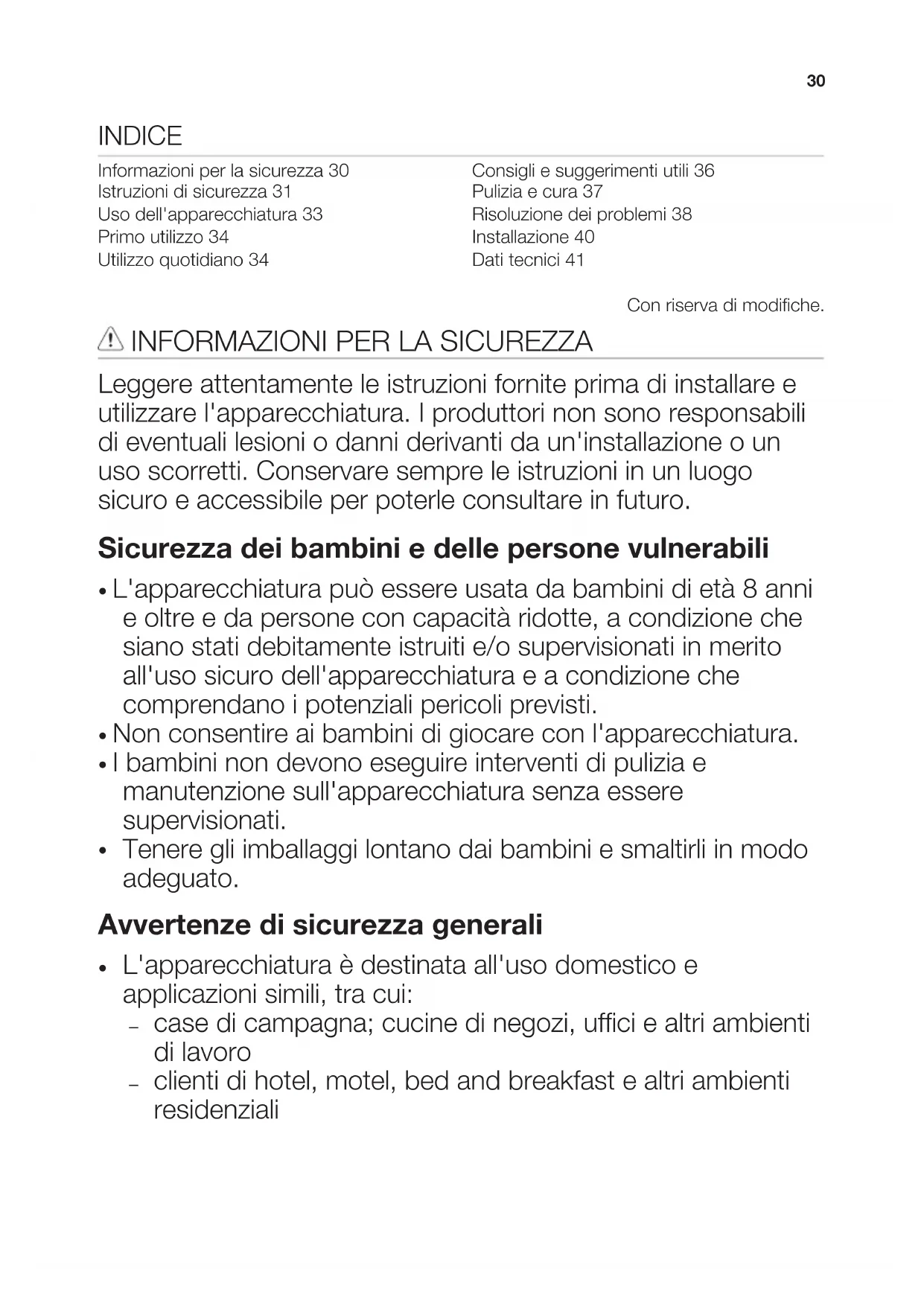 Informazioni per la sicurezza 30
