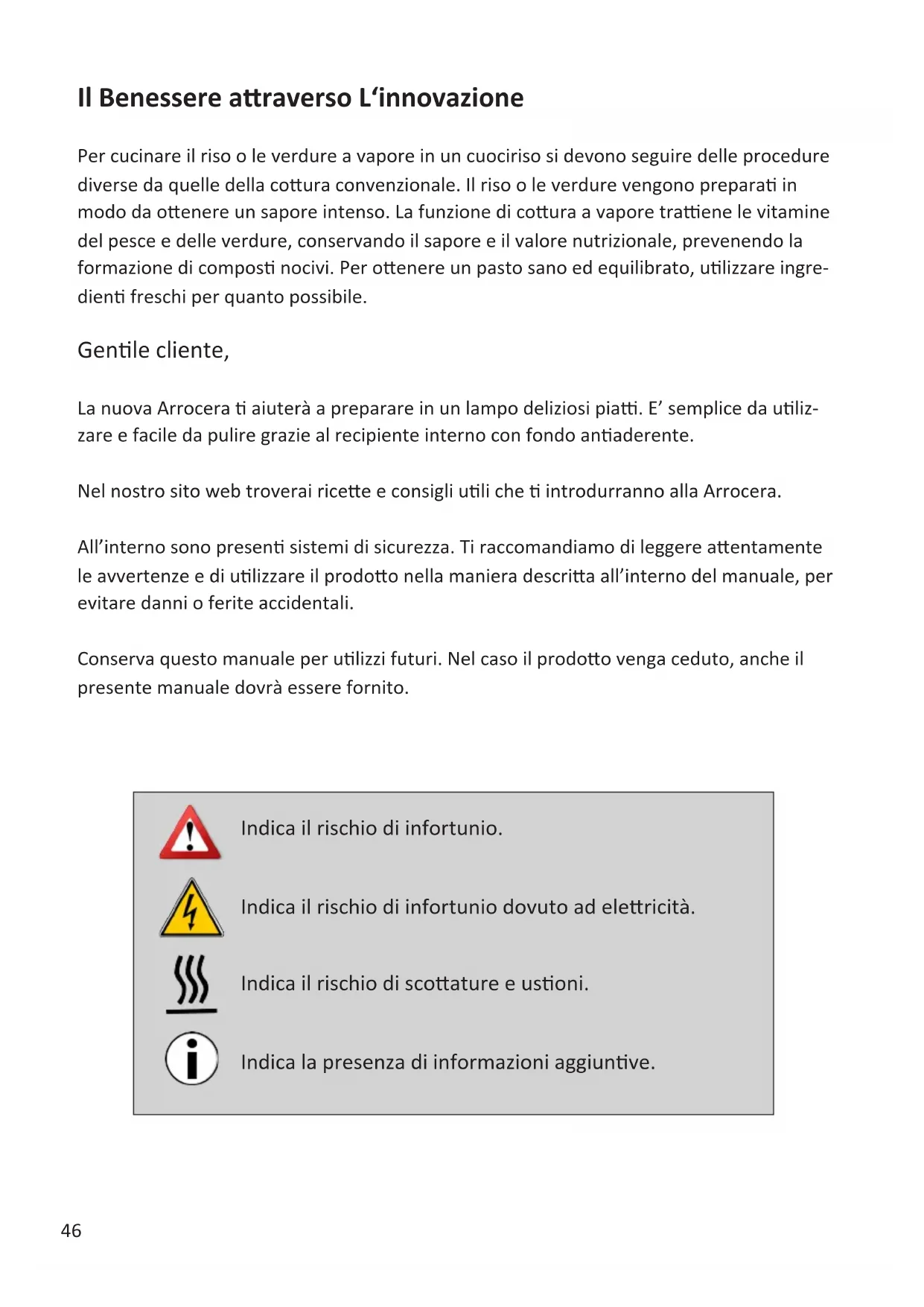 Conserva questo manuale per utilizzi futuri. Nel caso il prodotto venga ceduto, anche il presente manuale dovrà essere fornito.