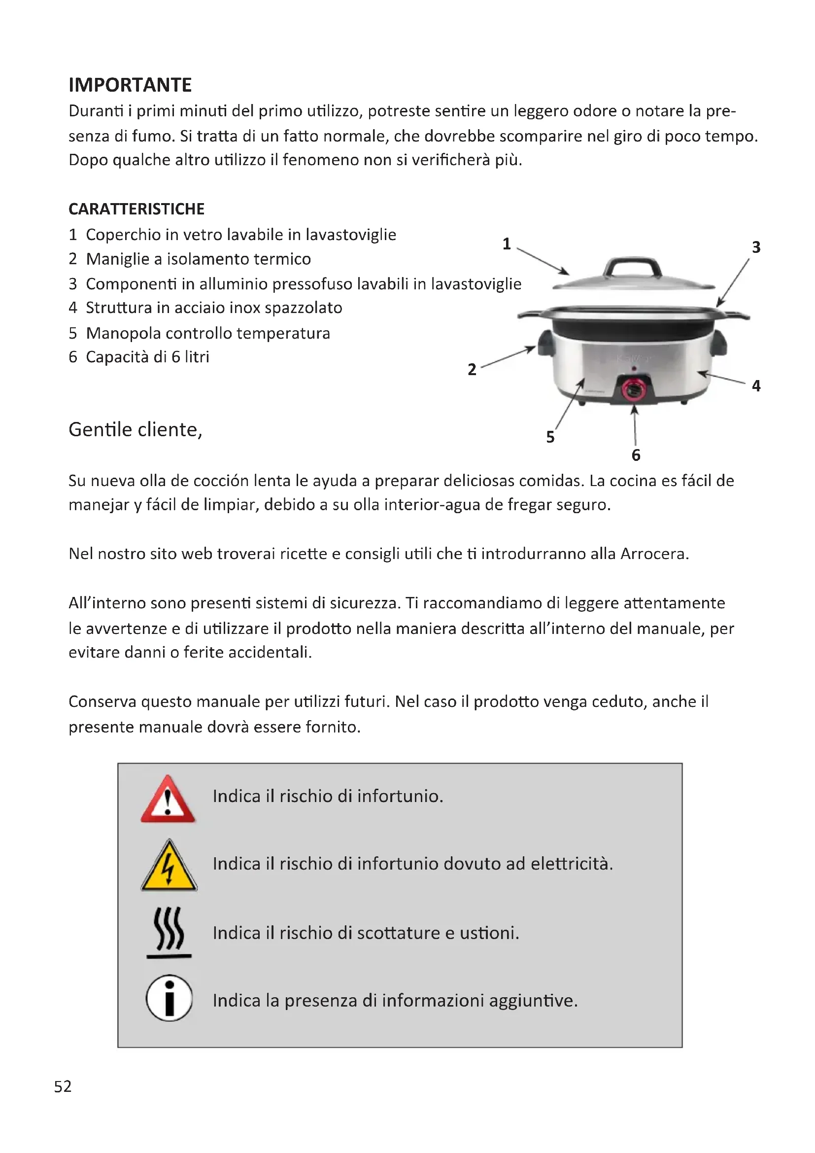 Duranti i primi minuti del primo utilizzato, potreste sentire un leggero odore o notare la presenza di fumo. Si tratta di un fatto normale, che dovrebbe scomparire nel giro di peu tempo. Dopo quale altri utilizzato il fenomeno non si verificcherà più.
