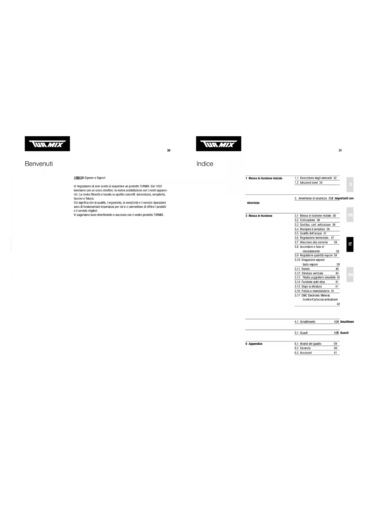 Vi ringraziamo di aver scelto di acquistare un prodotto TURMIX. Dal 1933 lavoriamo con un unico obiettivo: la vostra soddisfazione con i nostri apparecchi. La nostra filosofia è basata su quattro concetti: durevolezza, semplicità, fascino e fiducia.