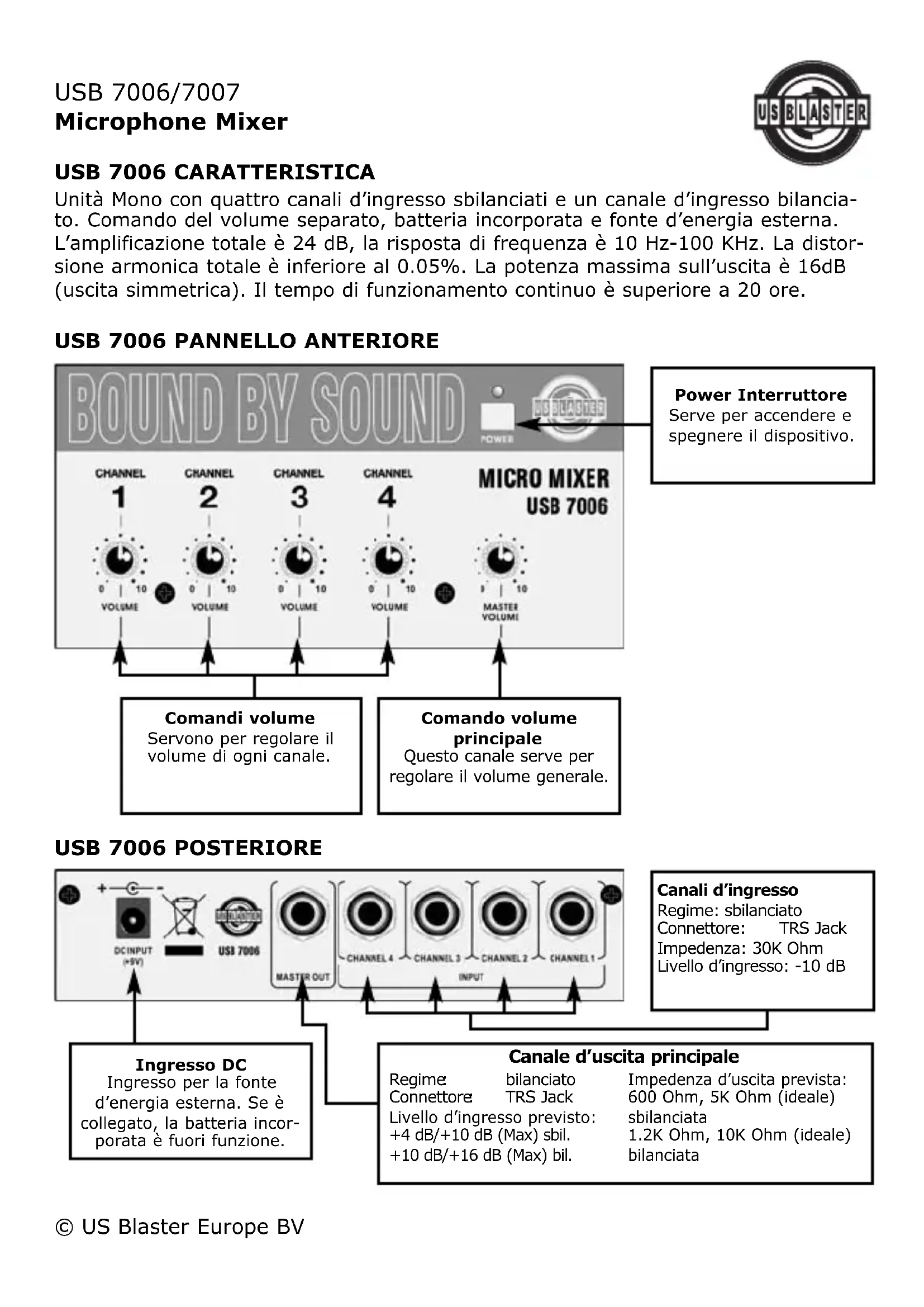 USB 7007 - Attrezzatura DJ US Blaster - Manuale utente e istruzioni gratuiti