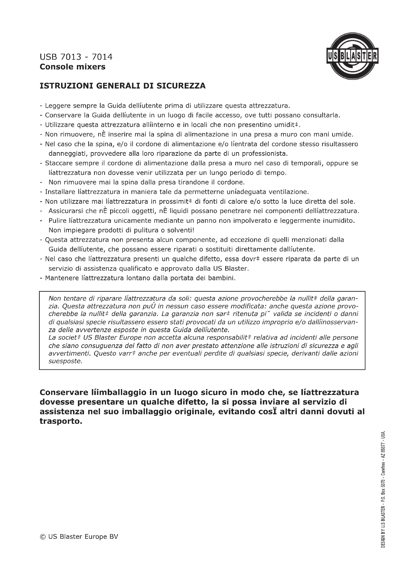 USB 7013 - Attrezzatura DJ US Blaster - Manuale utente e istruzioni gratuiti