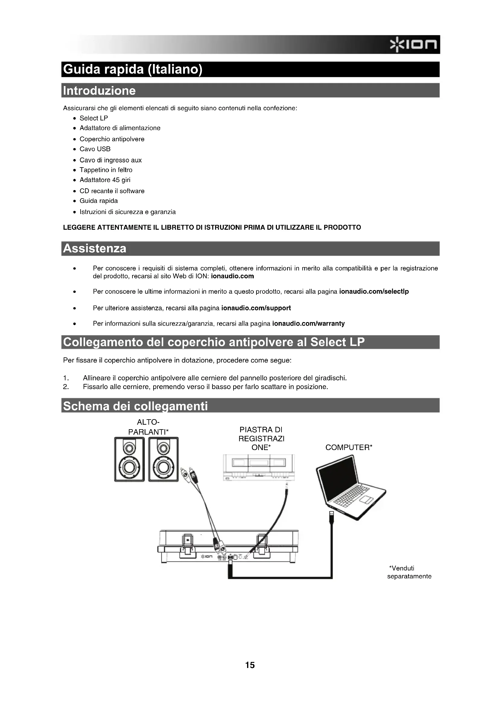 Select LP - Giradischi ION - Manuale utente e istruzioni gratuiti