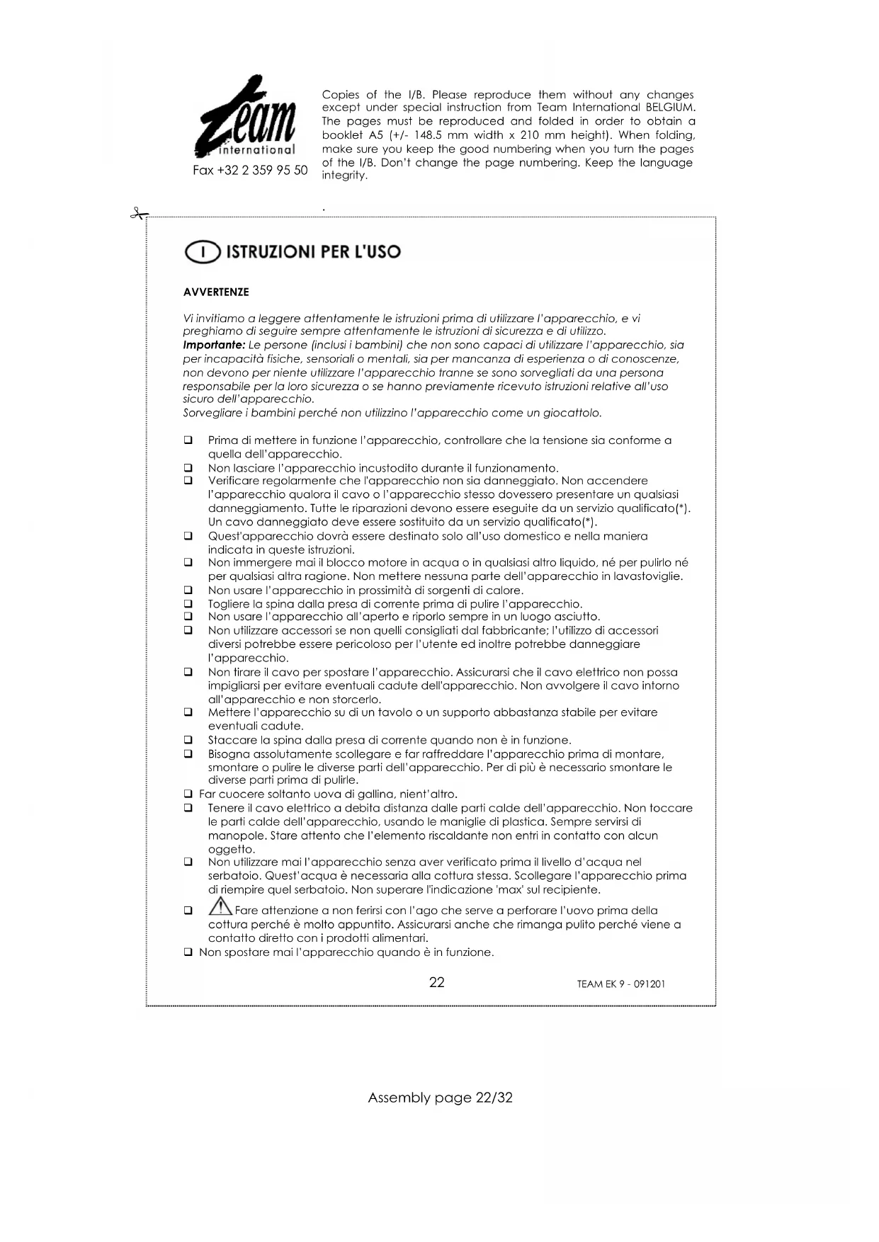 EK 9 - Cuociuova TEAM - Manuale utente e istruzioni gratuiti