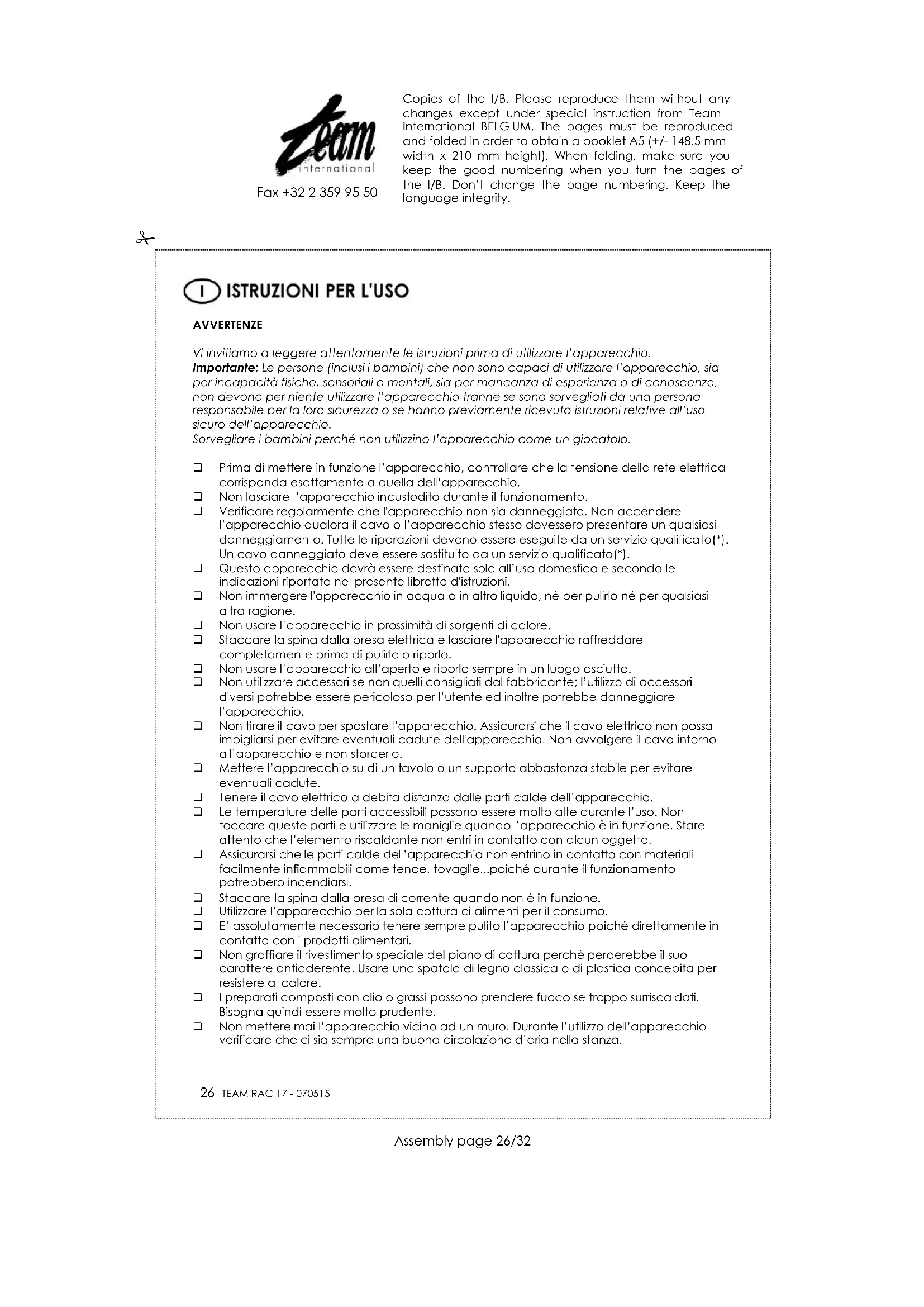 Scarica le istruzioni per il tuo Apparecchio per fonduta, raclette e wok in formato PDF gratuitamente! Trova il tuo manuale RAC 17 - TEAM e riprendi in mano il tuo dispositivo elettronico. In questa pagina sono pubblicati tutti i documenti necessari per l'utilizzo del tuo dispositivo. RAC 17 del marchio TEAM.
