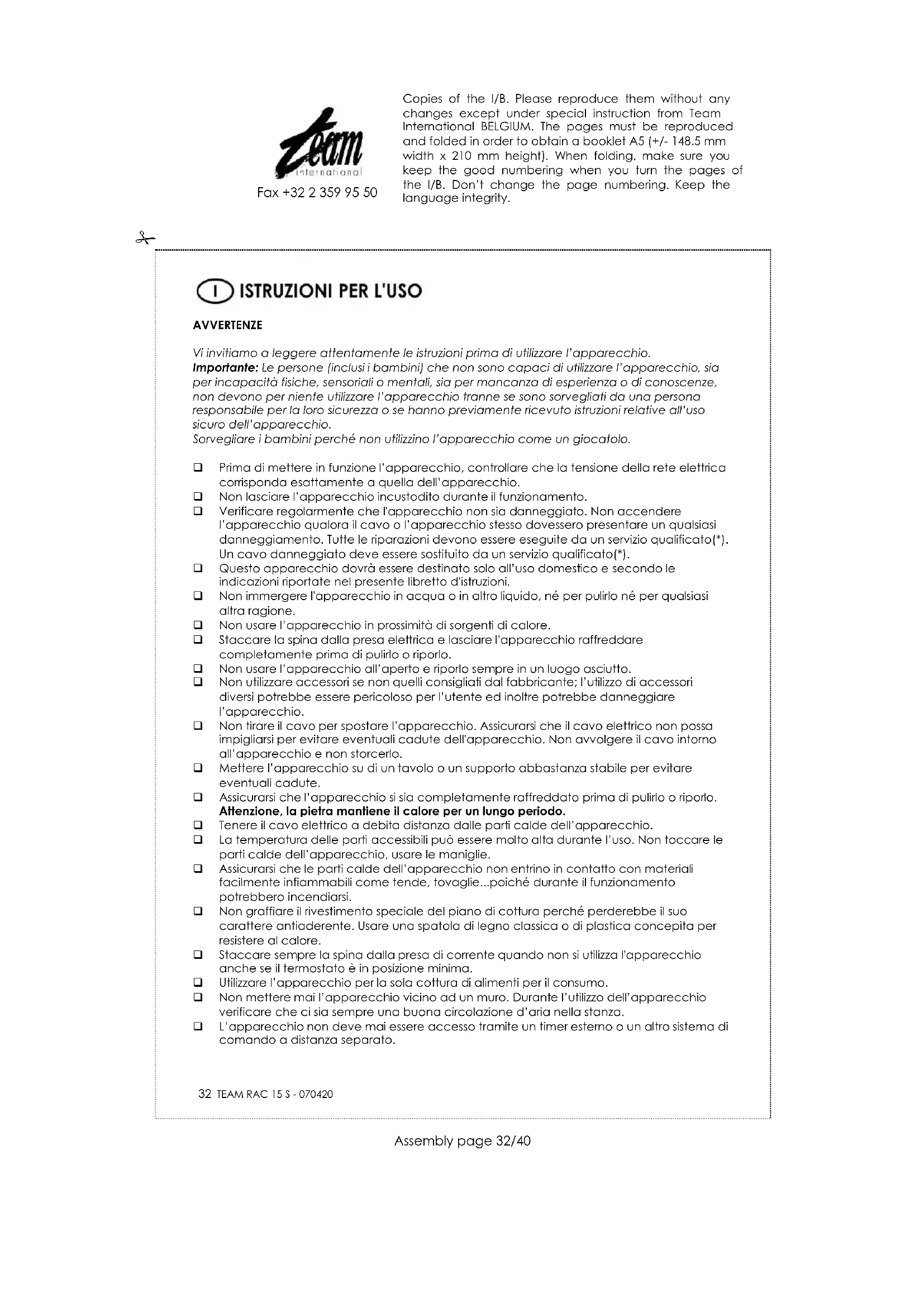 MANUALE UTENTE RAC 15 S TEAM
