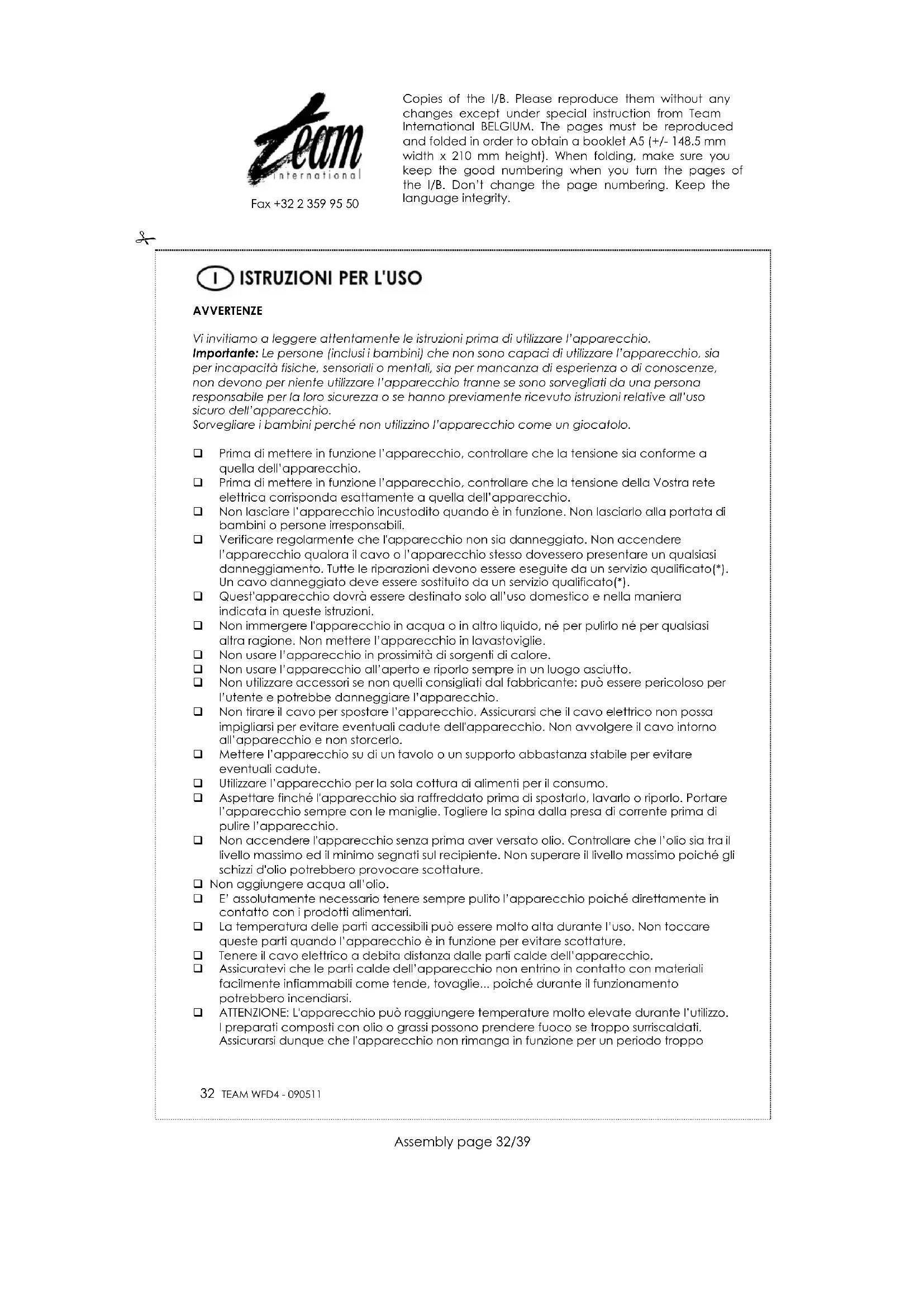 Scarica le istruzioni per il tuo Apparecchio per fonduta, raclette e wok in formato PDF gratuitamente! Trova il tuo manuale WFD 4 - TEAM e riprendi in mano il tuo dispositivo elettronico. In questa pagina sono pubblicati tutti i documenti necessari per l'utilizzo del tuo dispositivo. WFD 4 del marchio TEAM.