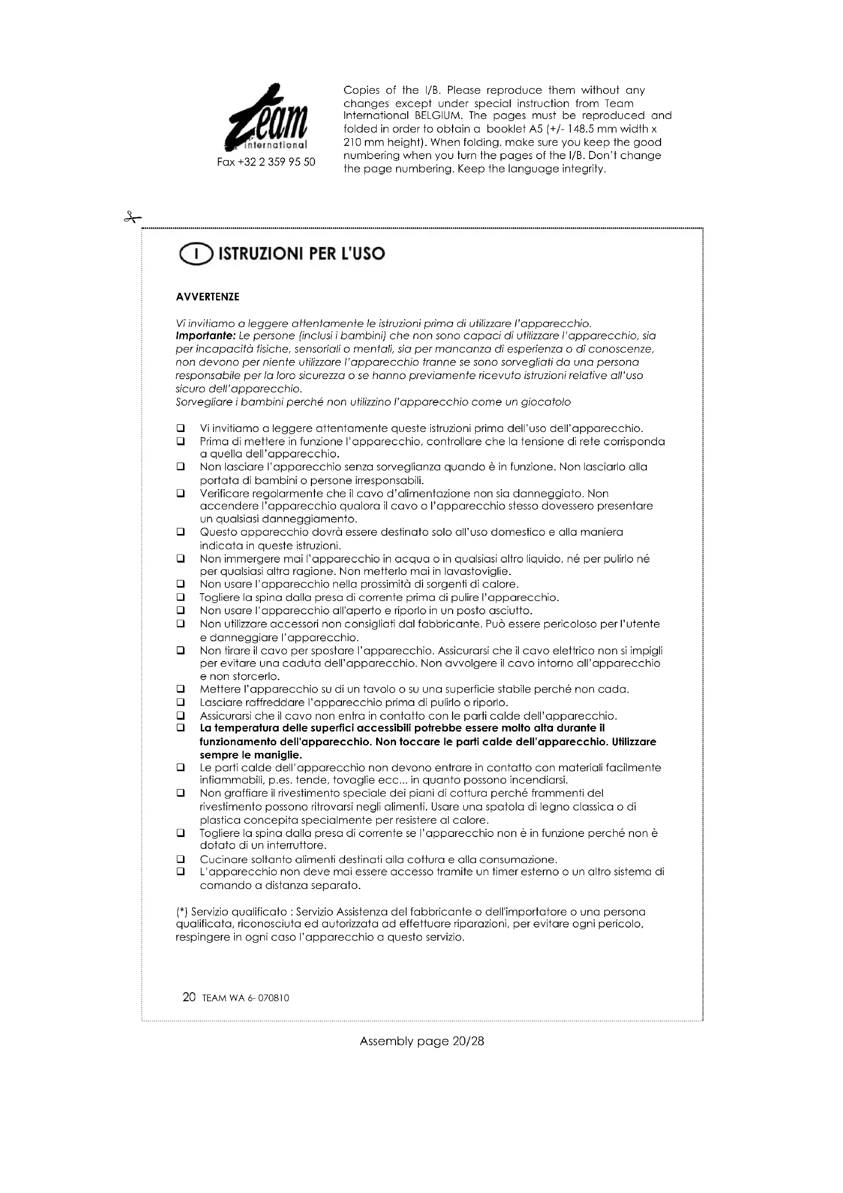 Trova gratuitamente il manuale del dispositivo WA 6 TEAM in formato PDF.