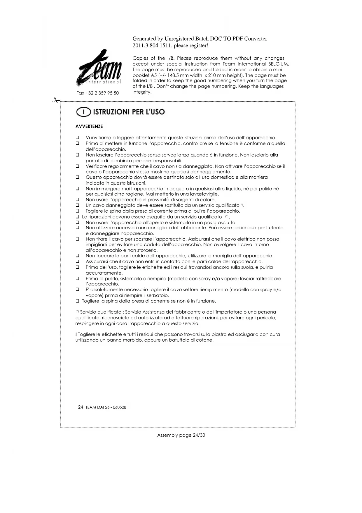 DAI 26 - Ferro da stiro TEAM - Manuale utente e istruzioni gratuiti