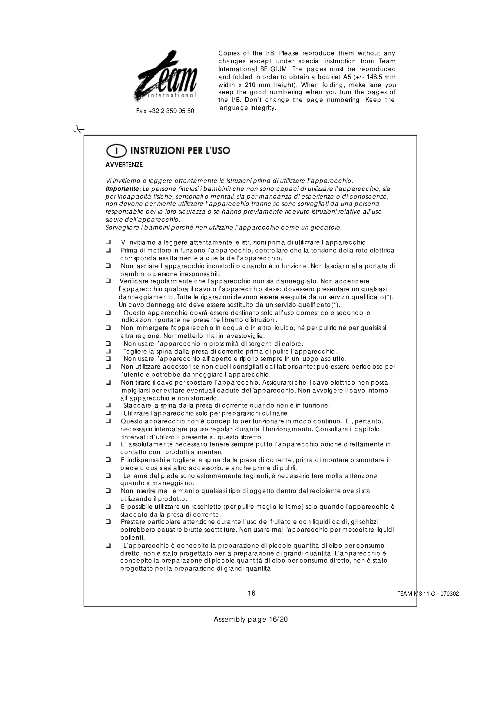 Scarica le istruzioni per il tuo Mixer in formato PDF gratuitamente! Trova il tuo manuale MS 11 C - TEAM e riprendi in mano il tuo dispositivo elettronico. In questa pagina sono pubblicati tutti i documenti necessari per l'utilizzo del tuo dispositivo. MS 11 C del marchio TEAM.