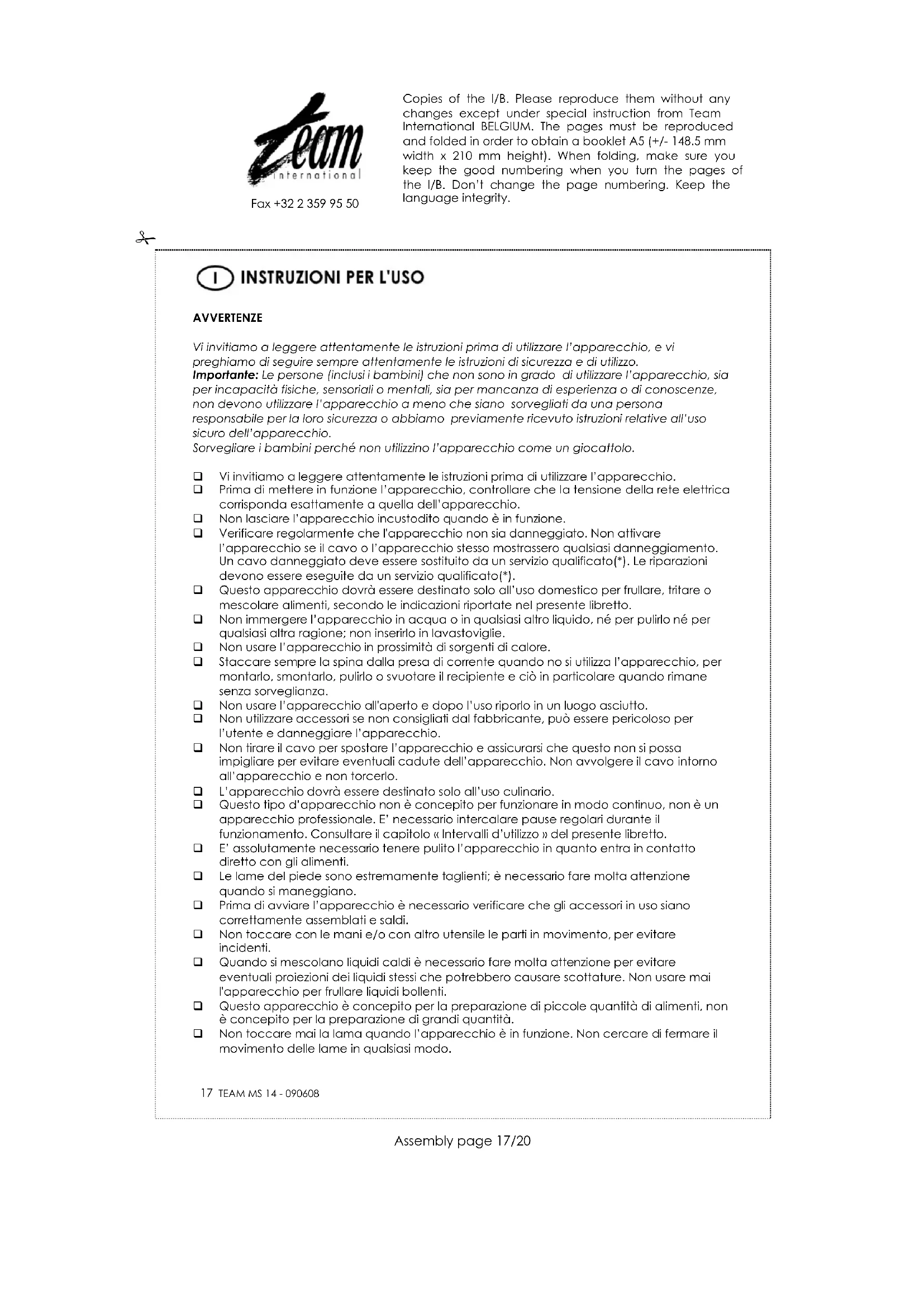 MS 14 - Mixer TEAM - Manuale utente e istruzioni gratuiti