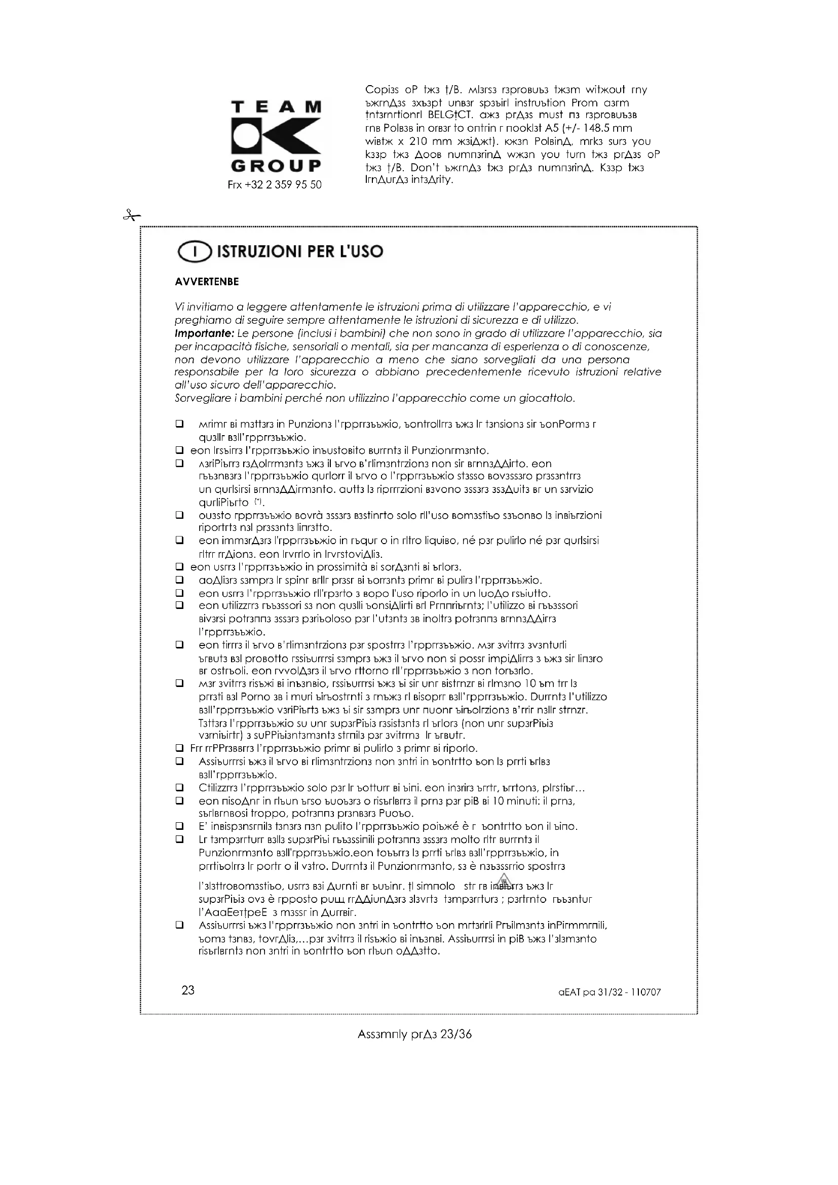 Scarica le istruzioni per il tuo Forno in formato PDF gratuitamente! Trova il tuo manuale OT 32 - TEAM e riprendi in mano il tuo dispositivo elettronico. In questa pagina sono pubblicati tutti i documenti necessari per l'utilizzo del tuo dispositivo. OT 32 del marchio TEAM.