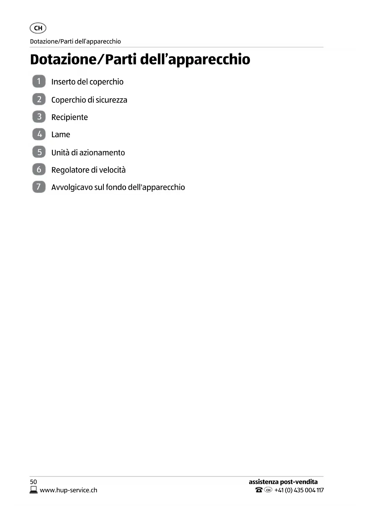 Dotazione/Parti dell'apparecchio 50