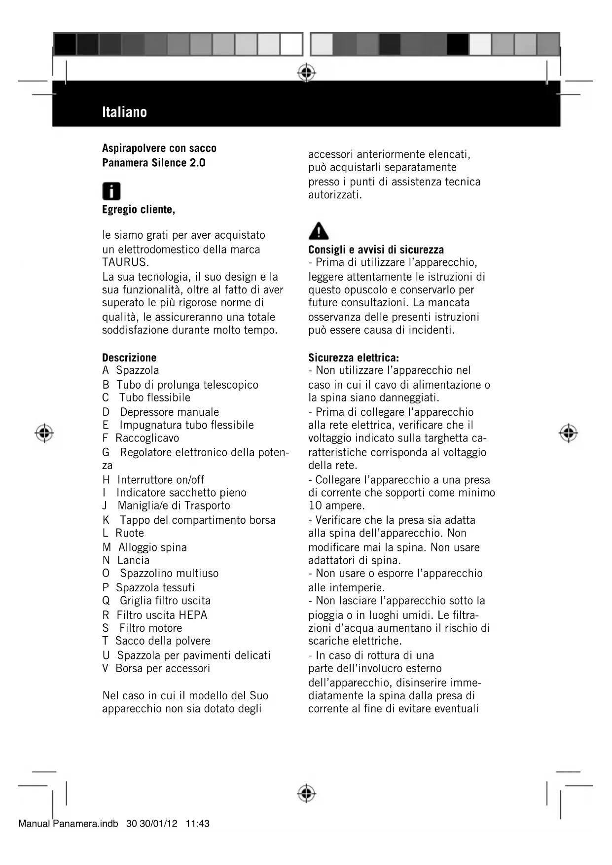Scarica le istruzioni per il tuo Aspirapolvere in formato PDF gratuitamente! Trova il tuo manuale Panamera Silence 2.0 - TAURUS e riprendi in mano il tuo dispositivo elettronico. In questa pagina sono pubblicati tutti i documenti necessari per l'utilizzo del tuo dispositivo. Panamera Silence 2.0 del marchio TAURUS.