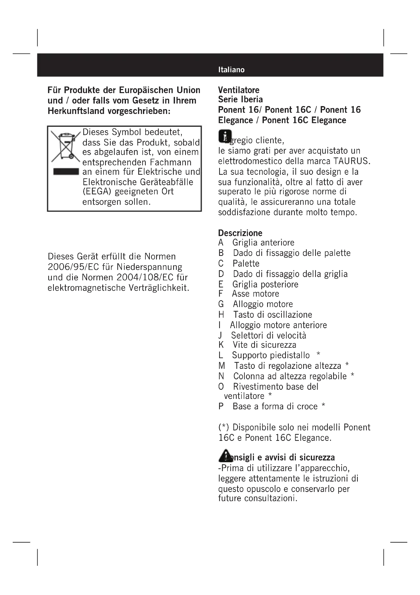 Serie Iberia - Ventilatore TAURUS - Manuale utente e istruzioni gratuiti