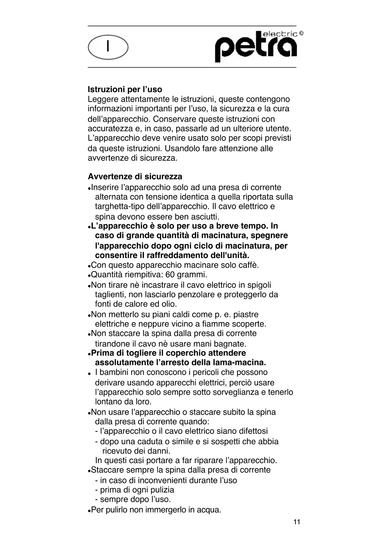 M 85 - Macina caffè Petra Electric - Manuale utente e istruzioni gratuiti