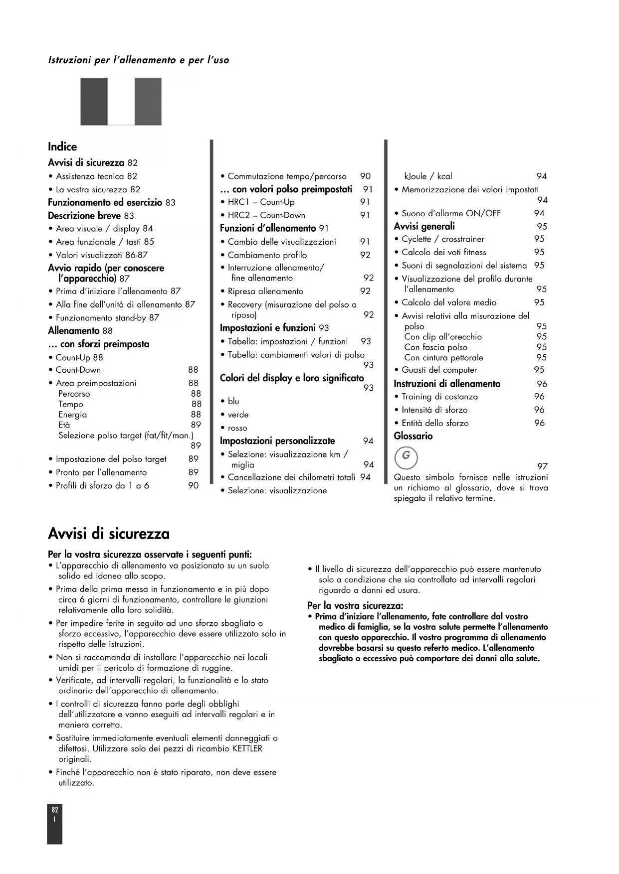 - Prima d’iniziare l’allenamento 87• Alla fine dell’unità di allenamento 87• Funzionamento stand-by 87 Allenamento 88 … con sforzi preimposta