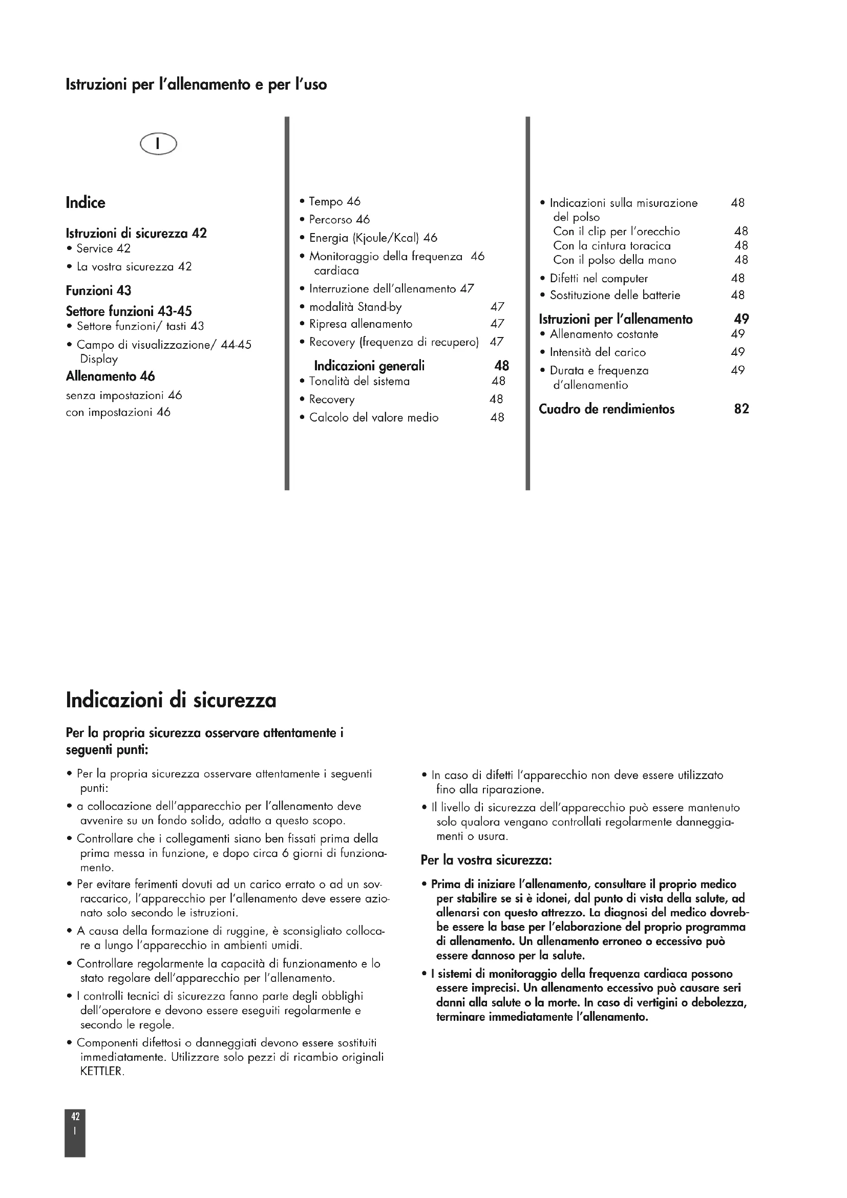 Istruzioni per l’allenamento e per l’uso Indicazioni di sicurezza Per la propria sicurezza osservare attentamente i seguenti punti: