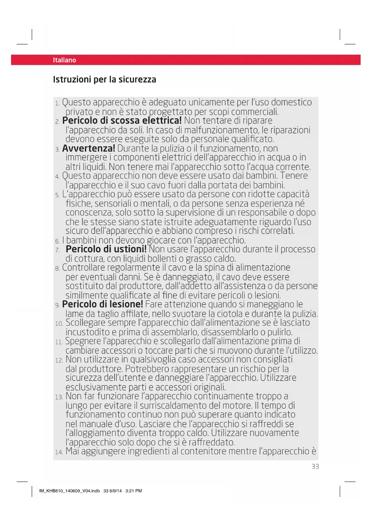 IM_KHB610_140609_V04.indb 33 6/9/14 3:21 PM34 Italiano Italiano Istruzioni per la sicurezza