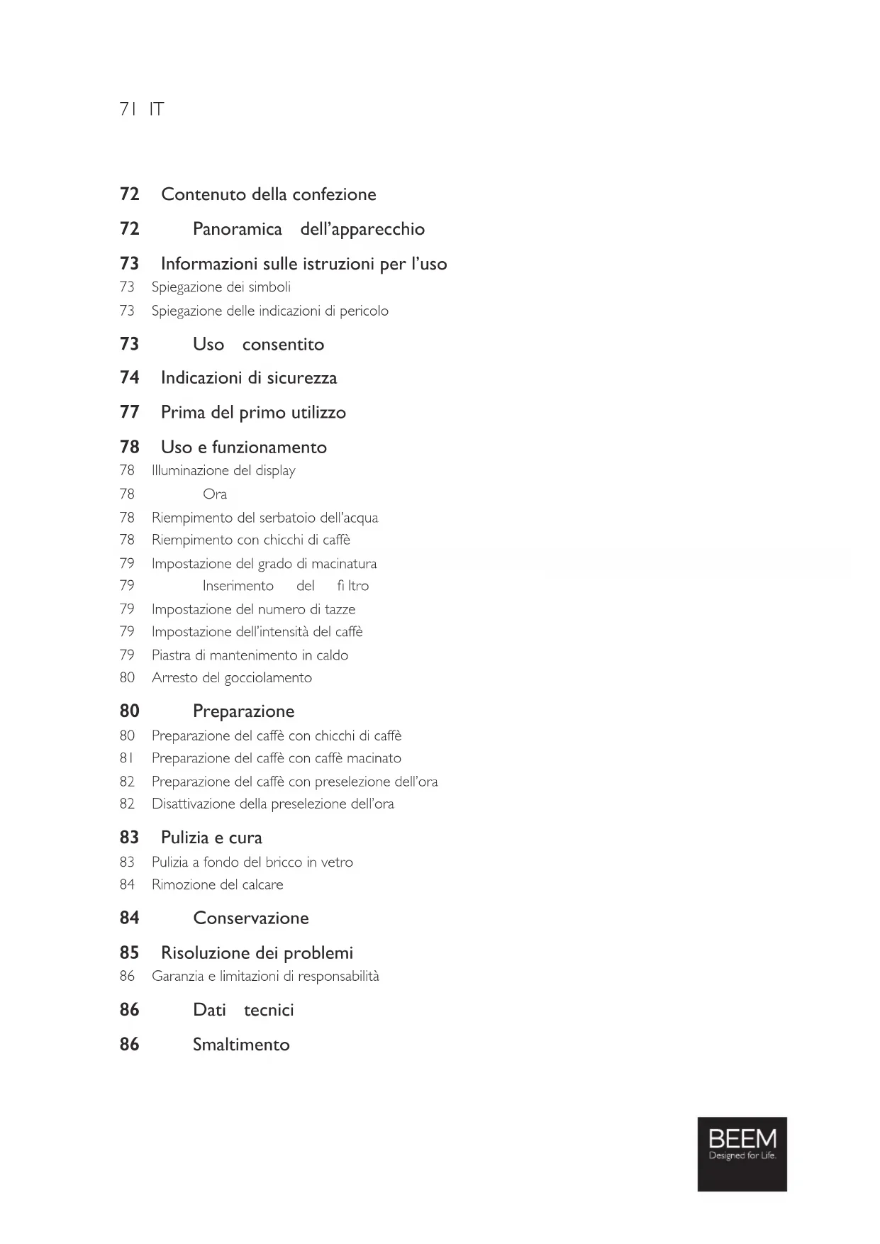 79 Impostazione del grado di macinatura