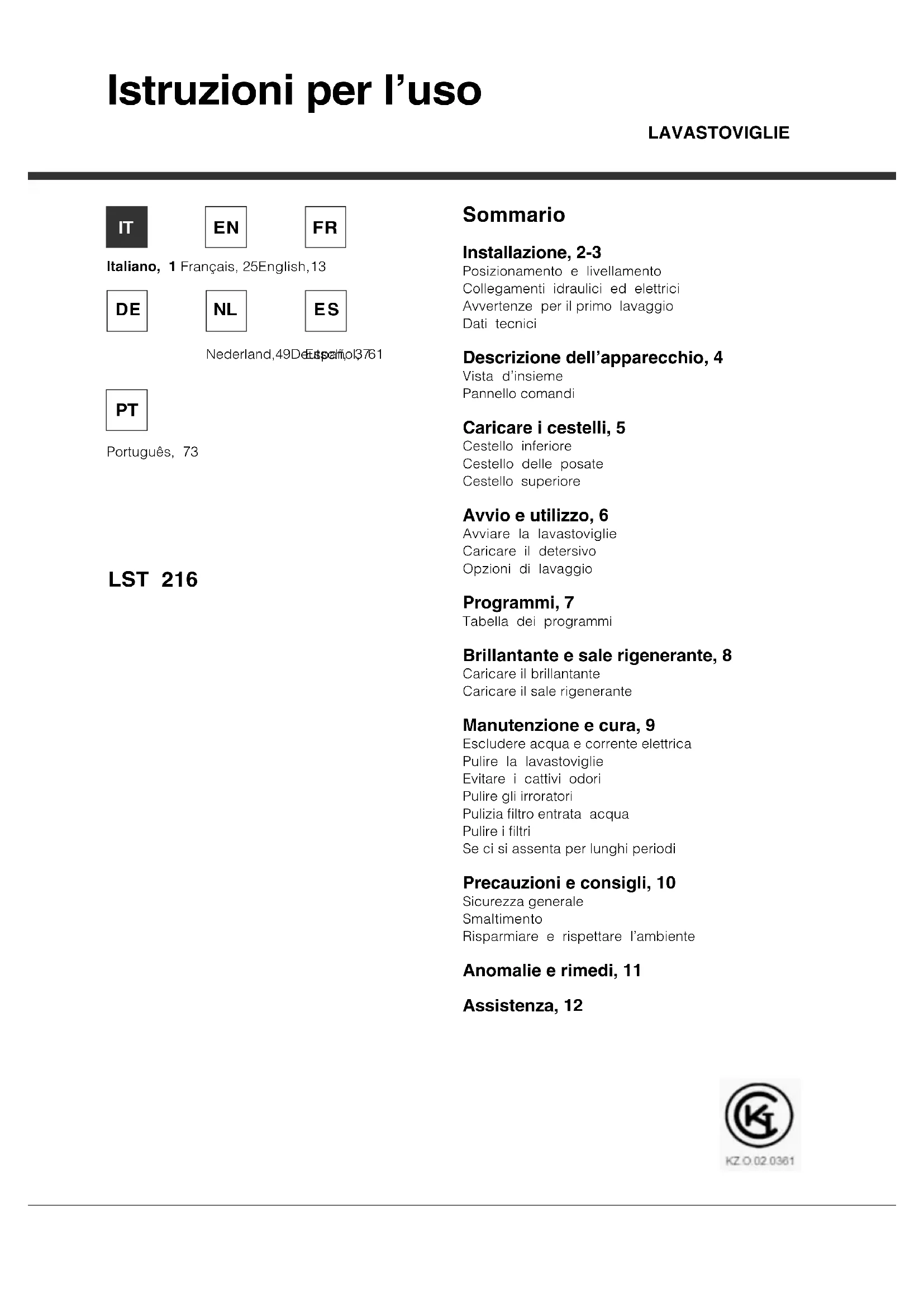 LST 216 AHA - Lavastoviglie HOTPOINT - Manuale utente e istruzioni gratuiti