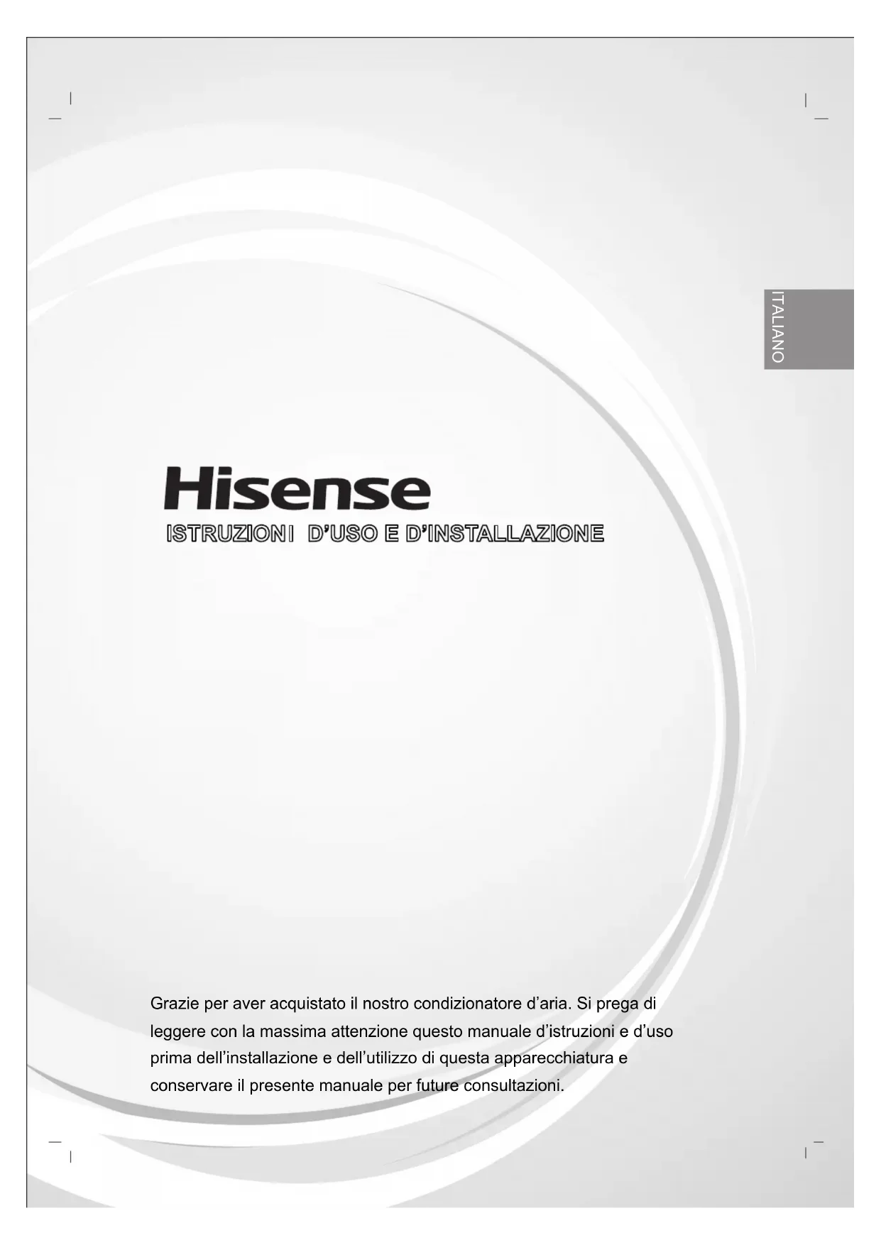 Installation instructionsGrazie per aver acquistato il nostro condizionatore d’aria. Si prega di leggere con la massima attenzione questo manuale d’istruzioni e d’uso prima dell’installazione e dell’utilizzo di questa apparecchiatura e conservare il presente manuale per future consultazioni.