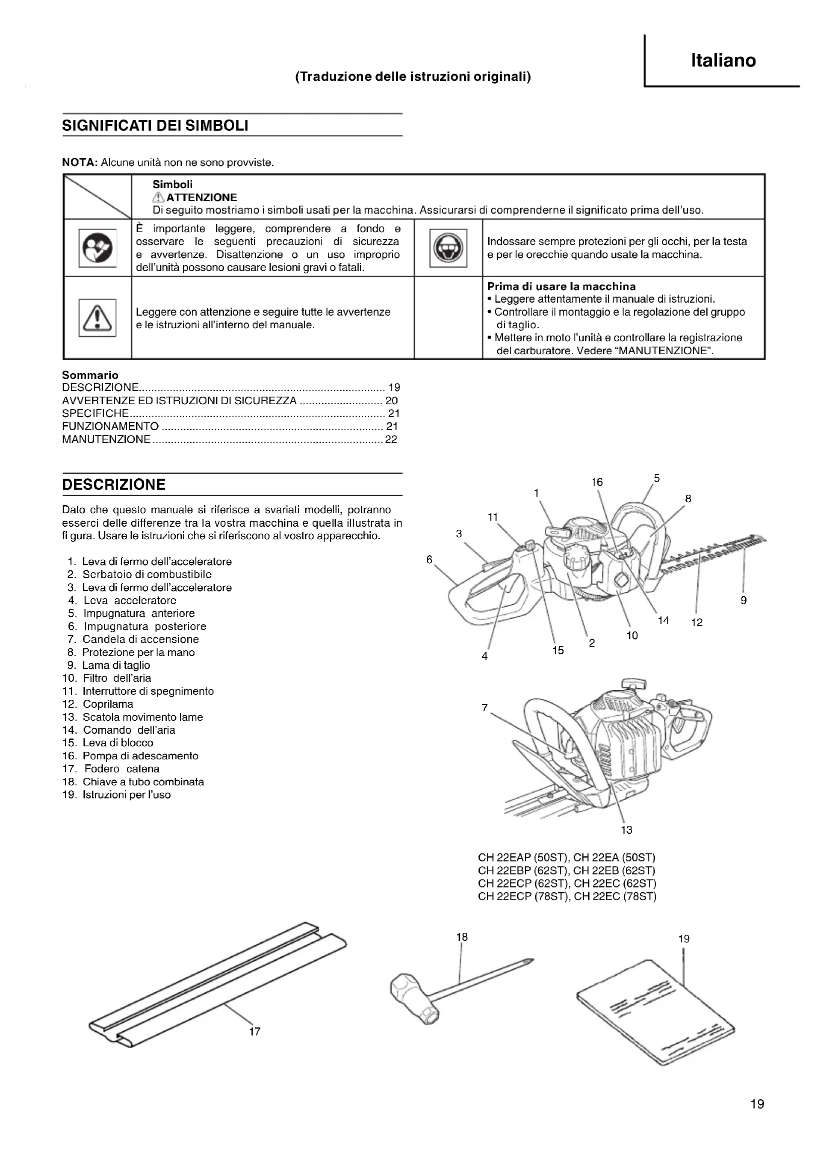 Scarica le istruzioni per il tuo Tagliasiepi in formato PDF gratuitamente! Trova il tuo manuale CH 22ECP - HITACHI e riprendi in mano il tuo dispositivo elettronico. In questa pagina sono pubblicati tutti i documenti necessari per l'utilizzo del tuo dispositivo. CH 22ECP del marchio HITACHI.