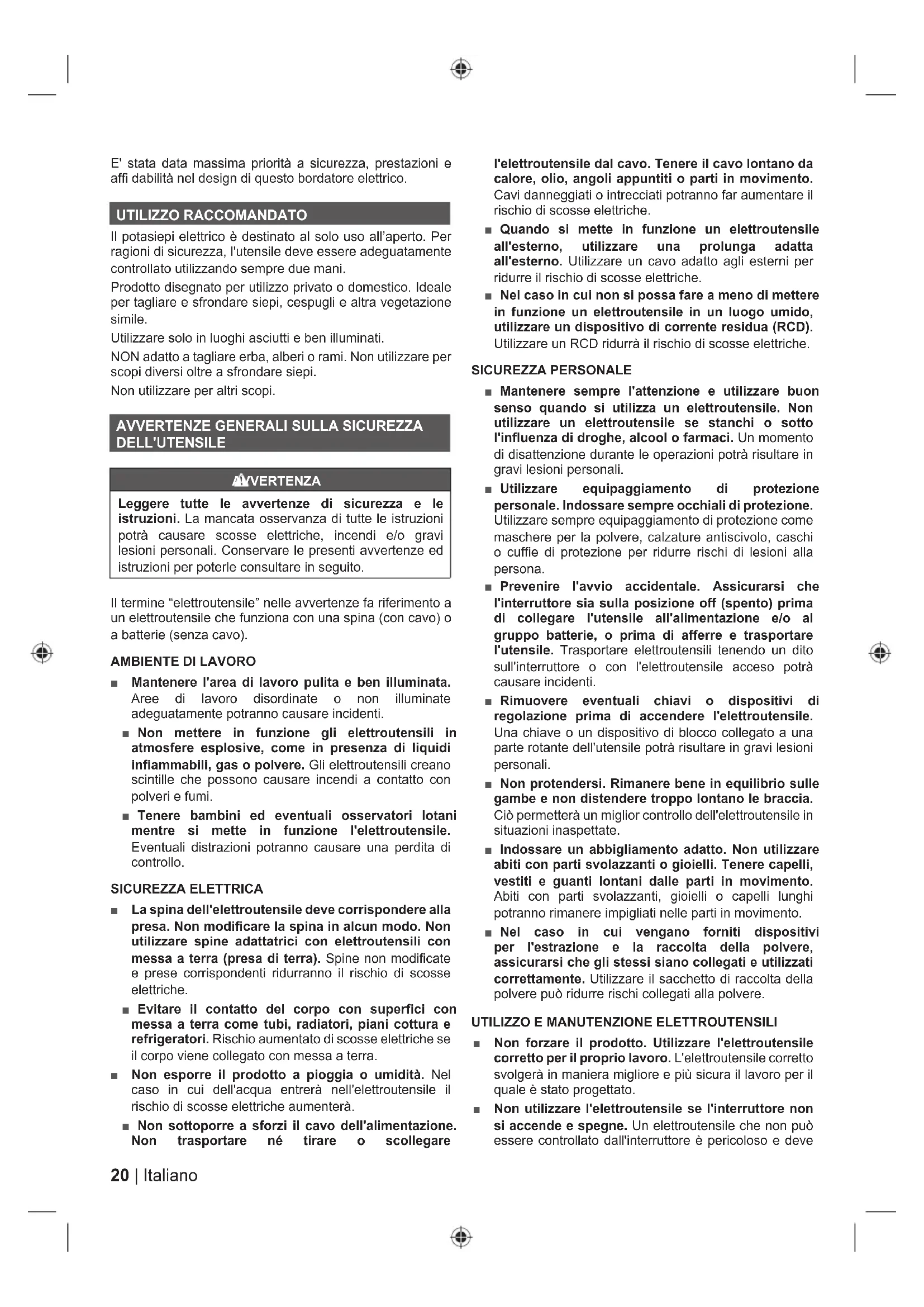 AVVERTENZE DI SICUREZZA TAGLIASIEPI