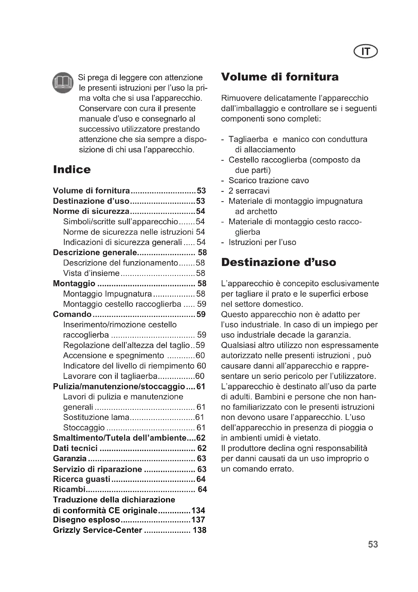 L'apparecchio è concepito esclusivamente per tagliare il prato e le superfici erbose nel settore domestico.