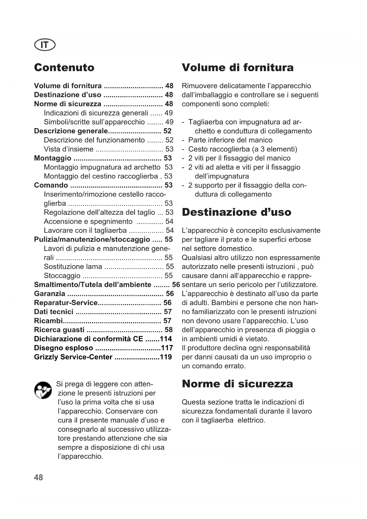 ERM 1030 G - Tosaerba Grizzly - Manuale utente e istruzioni gratuiti