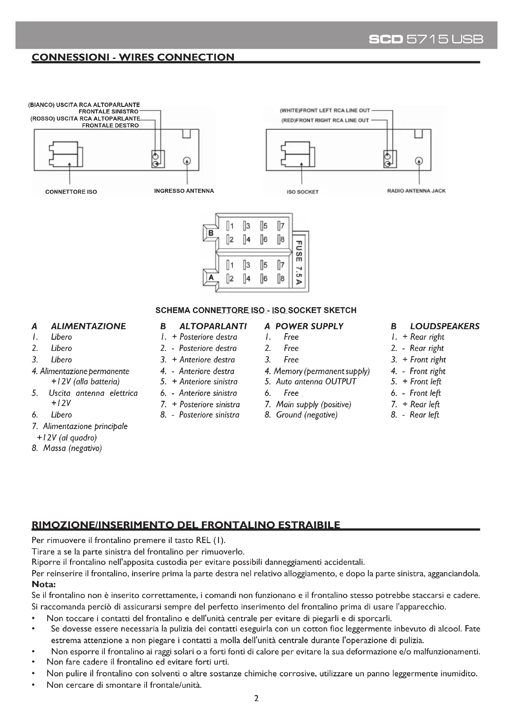 NOTA: L'auto radio SCD 5715USB, potrebbe non supportare alcuni apparecchi esterni con presa USB, quello e dovuto all'incompatibilità dei processori.