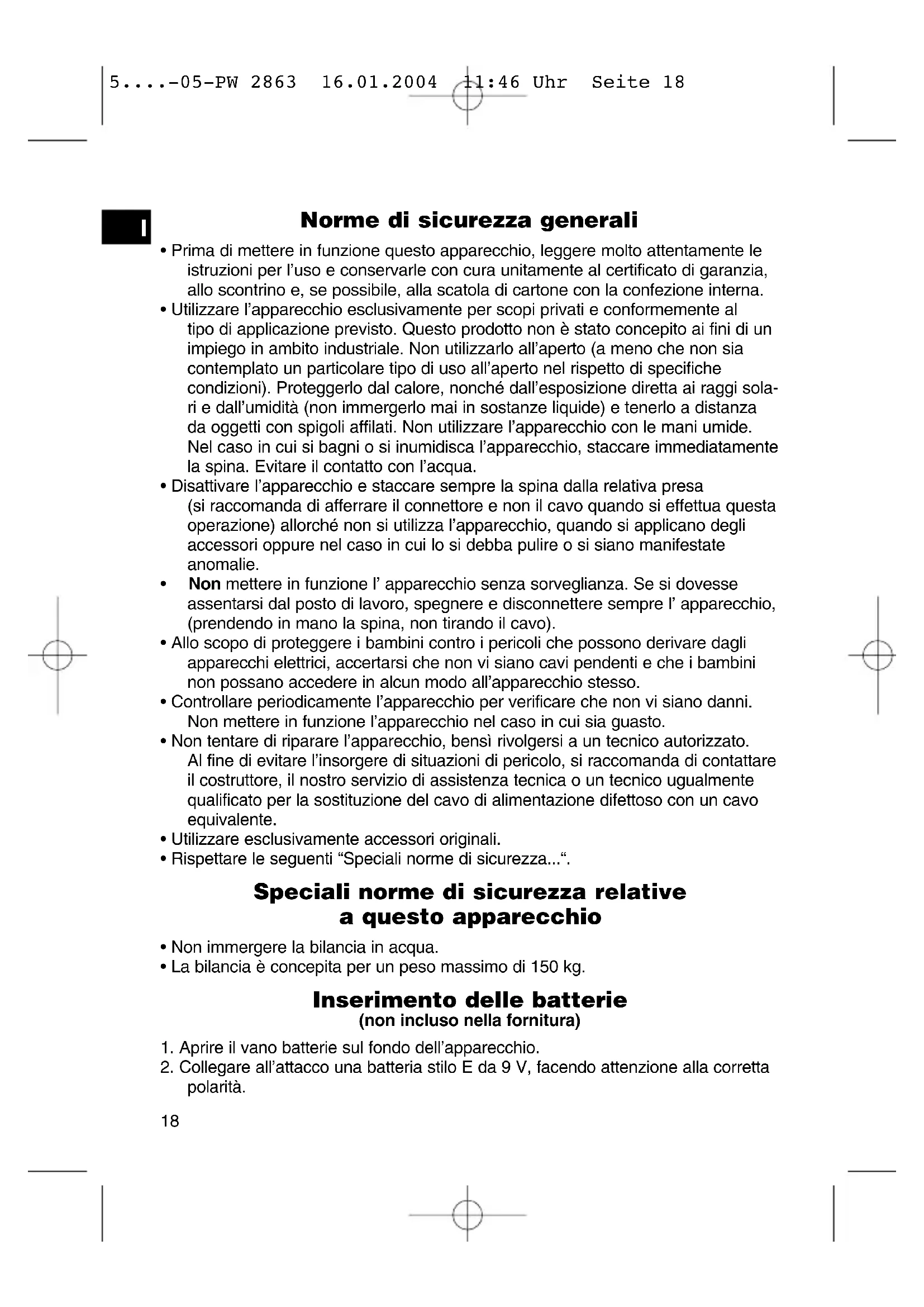 - La bilancia è concepita per un peso massimo di 150 kg. Inserimento delle batterie (non incluso nella fornitura)