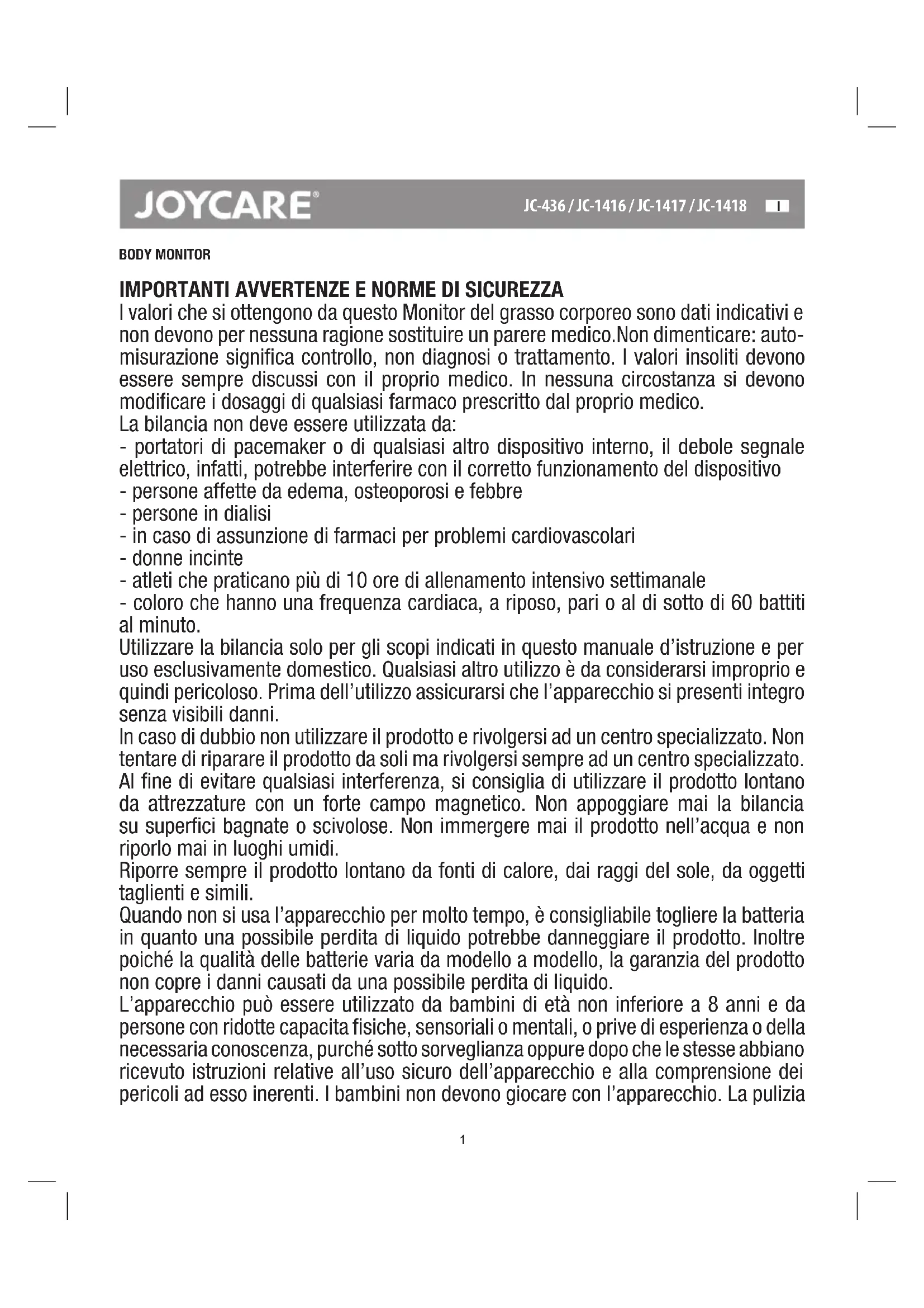 MANUALE UTENTE JC1418 Joycare