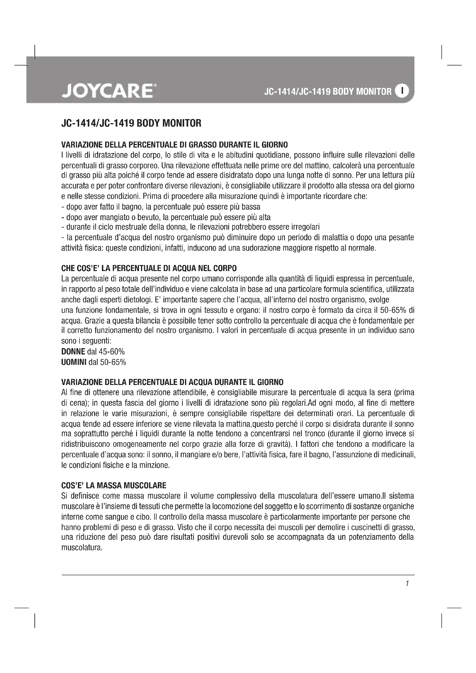 MANUALE UTENTE JC1419 Joycare