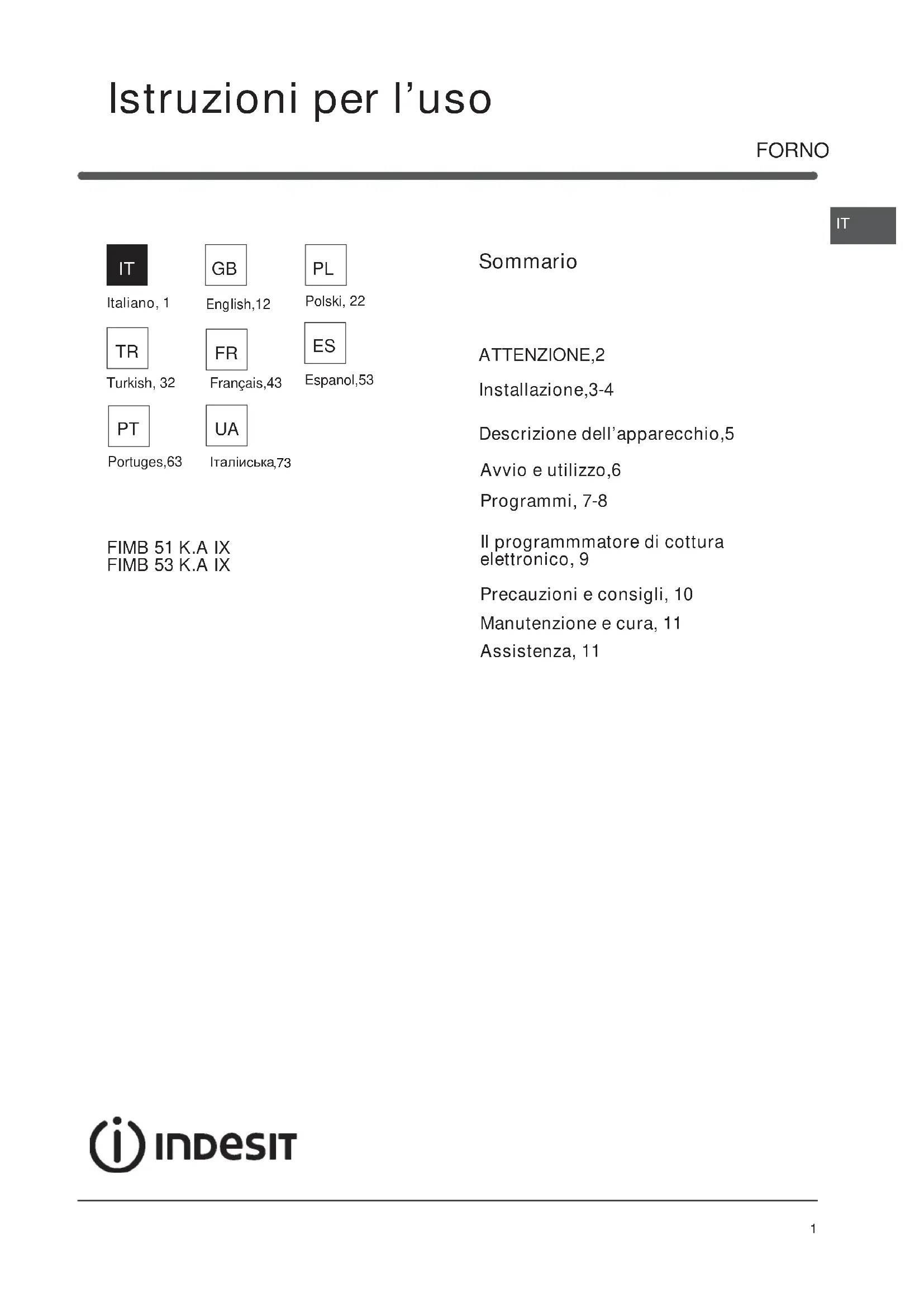 MANUALE UTENTE FIMB 51K.A IX INDESIT