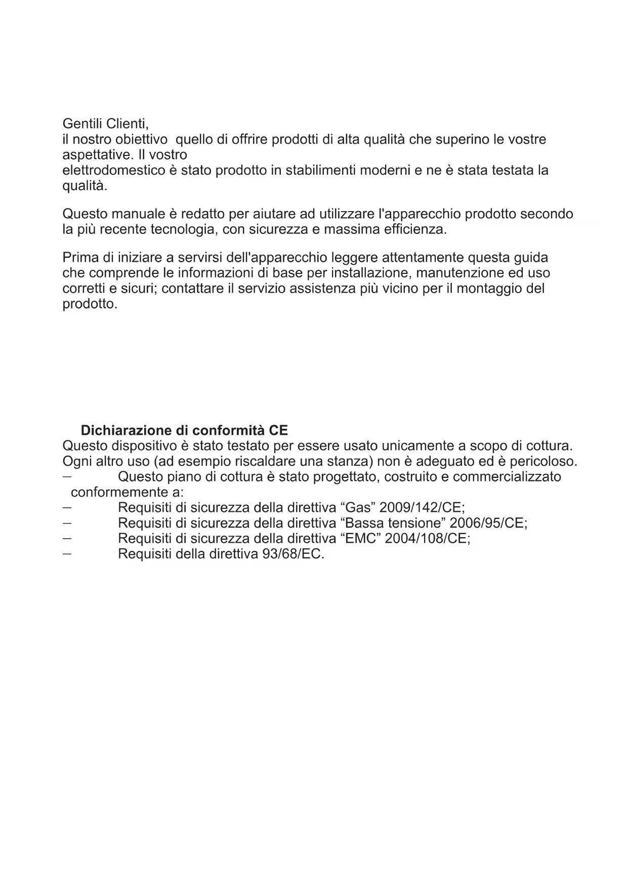 BI643YA/P BI640YA/PGentili Clienti, il nostro obiettivo quello di offrire prodotti di alta qualità che superino le vostre aspettative. Il vostro elettrodomestico è stato prodotto in stabilimenti moderni e ne è stata testata la qualità. Questo manuale è redatto per aiutare ad utilizzare l'apparecchio prodotto secondo la più recente tecnologia, con sicurezza e massima efficienza. Prima di iniziare a servirsi dell'apparecchio leggere attentamente questa guida che comprende le informazioni di base per installazione, manutenzione ed uso corretti e sicuri; contattare il servizio assistenza più vicino per il montaggio del prodotto. Dichiarazione di conformità CE Questo dispositivo è stato testato per essere usato unicamente a scopo di cottura. Ogni altro uso (ad esempio riscaldare una stanza) non è adeguato ed è pericoloso. -Questo piano di cottura è stato progettato, costruito e commercializzato conformemente a: -Requisiti di sicurezza della direttiva “Gas” 2009/142/CE; -Requisiti di sicurezza della direttiva “Bassa tensione” 2006/95/CE; -Requisiti di sicurezza della direttiva “EMC” 2004/108/CE; -Requisiti della direttiva 93/68/EC.INDICE: