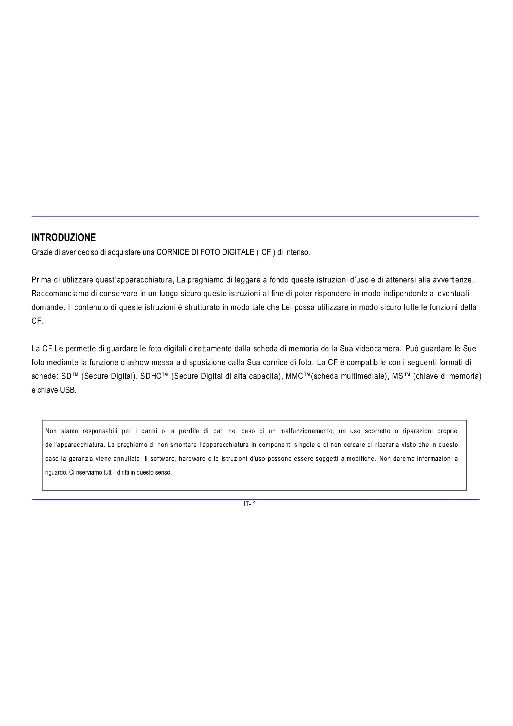 Grazie di aver decidso di-acquistare una CORNICE DI FOTO DIGITALE (CF) di Intenso.