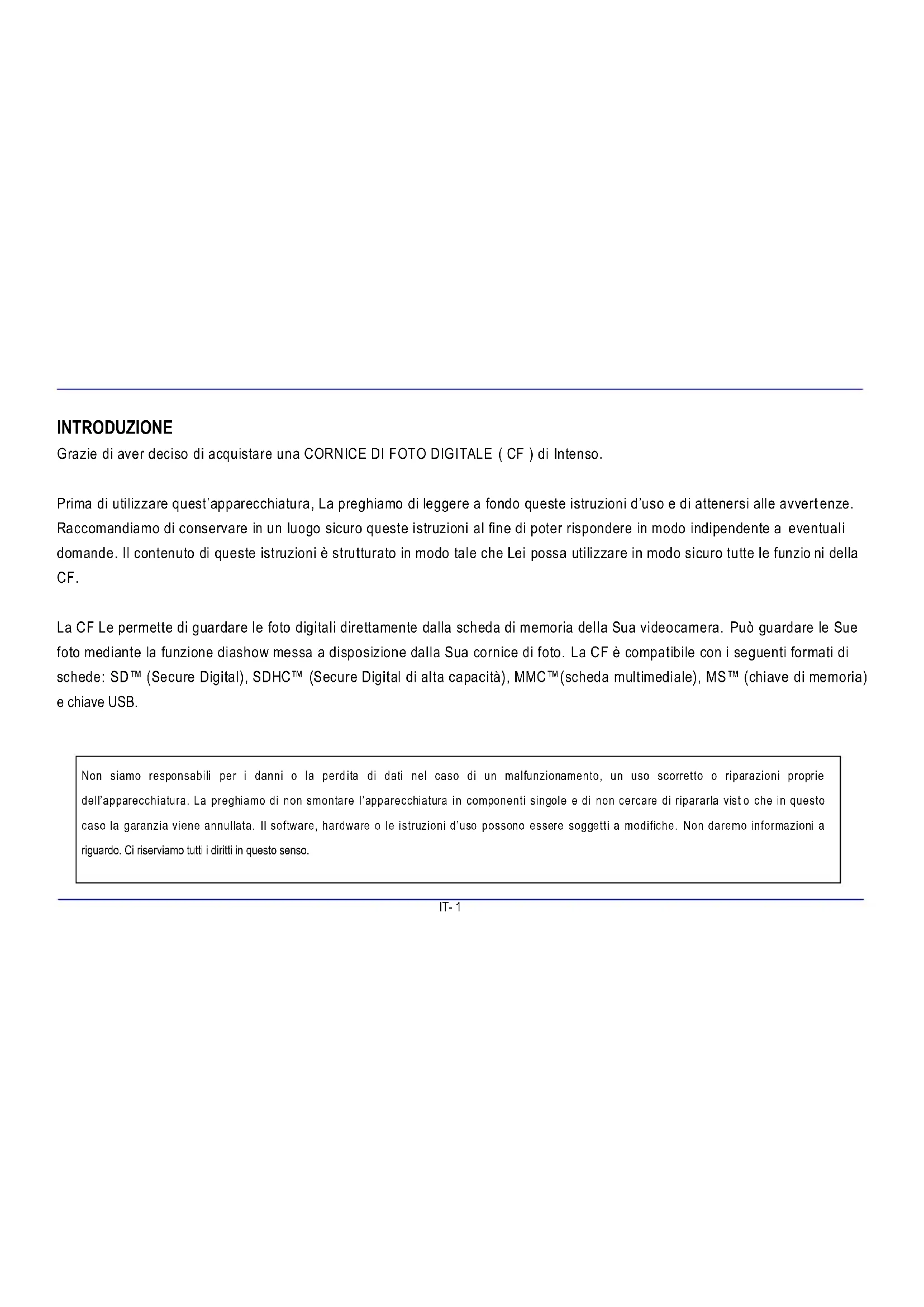 Grazie di aver deciso di acquistare una CORNICE DI FOTO DIGITALE (CF) di Intenso.