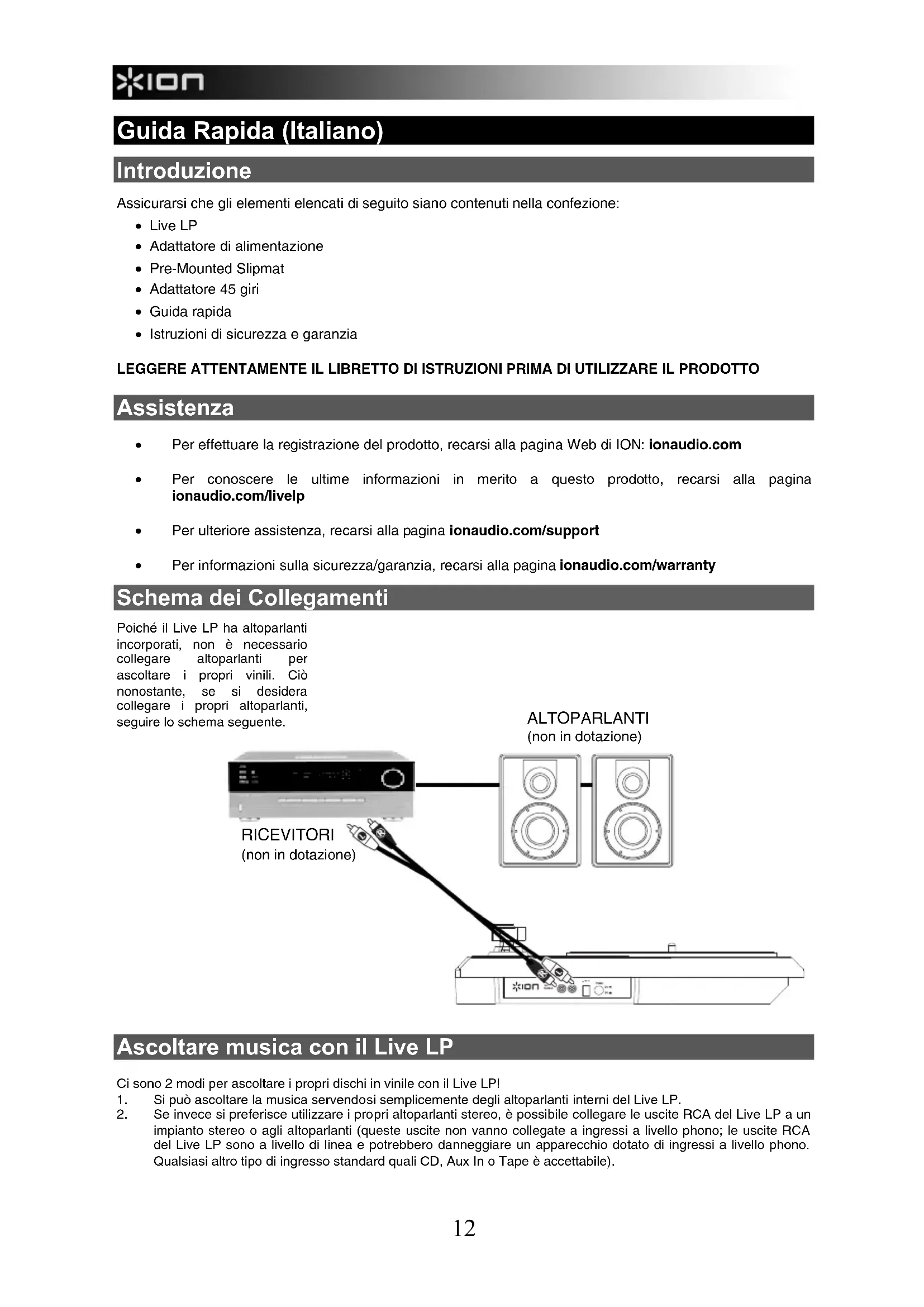 PRIMA DI RendenRE QUESTO PRODOTTO, contattare ION Audio per ricevere assistenza tecnica.