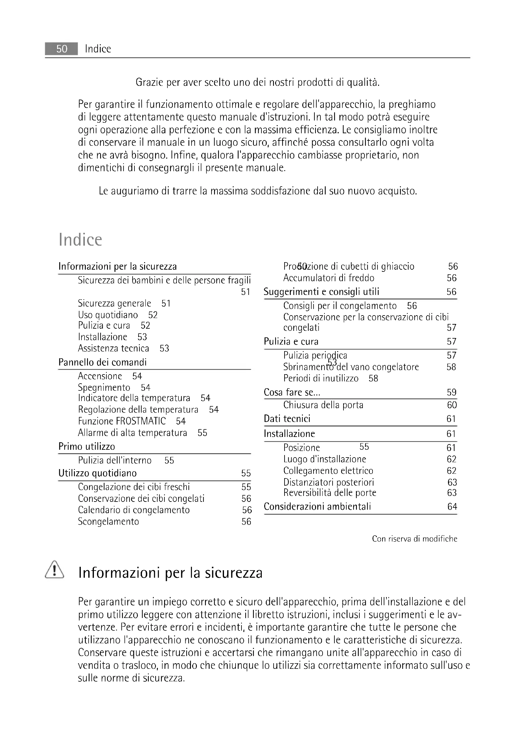| Informazioni per la sicurezza | |