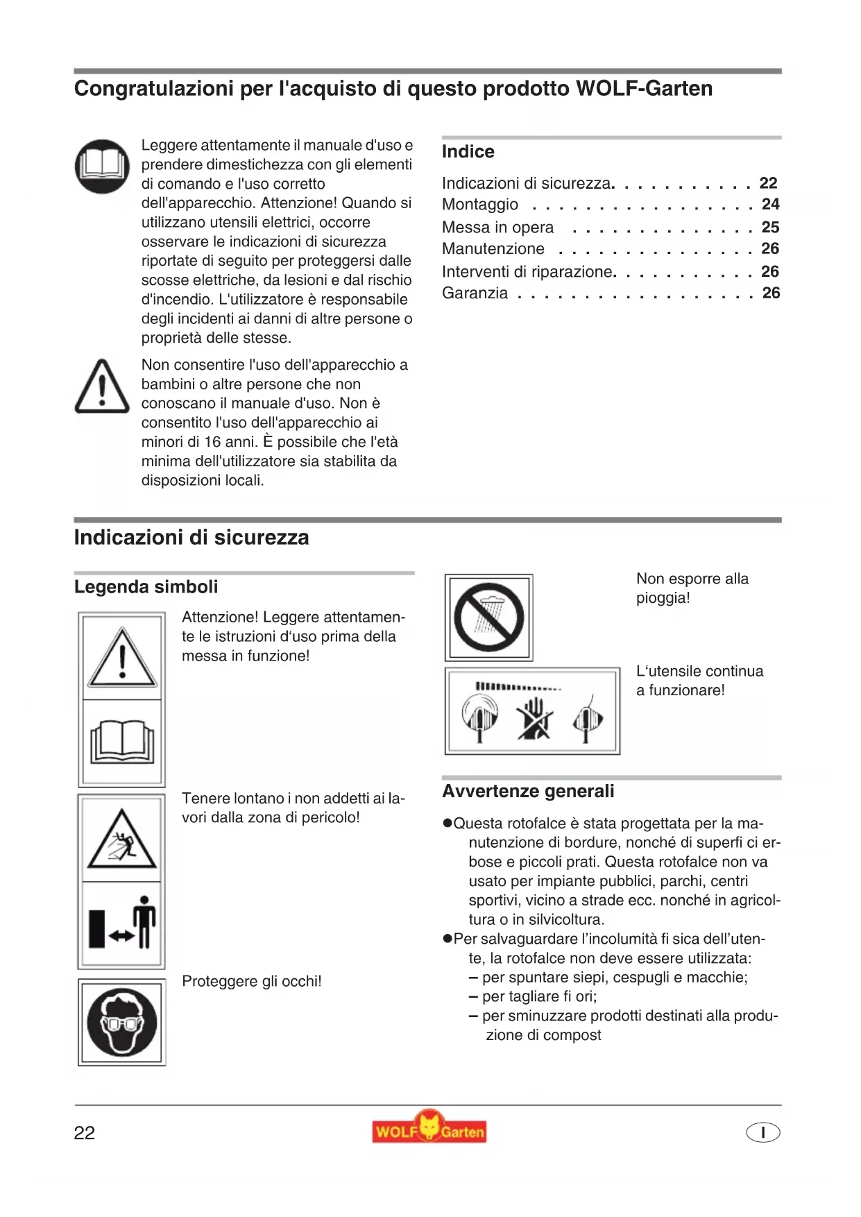 Indicazioni di sicurezza. 22