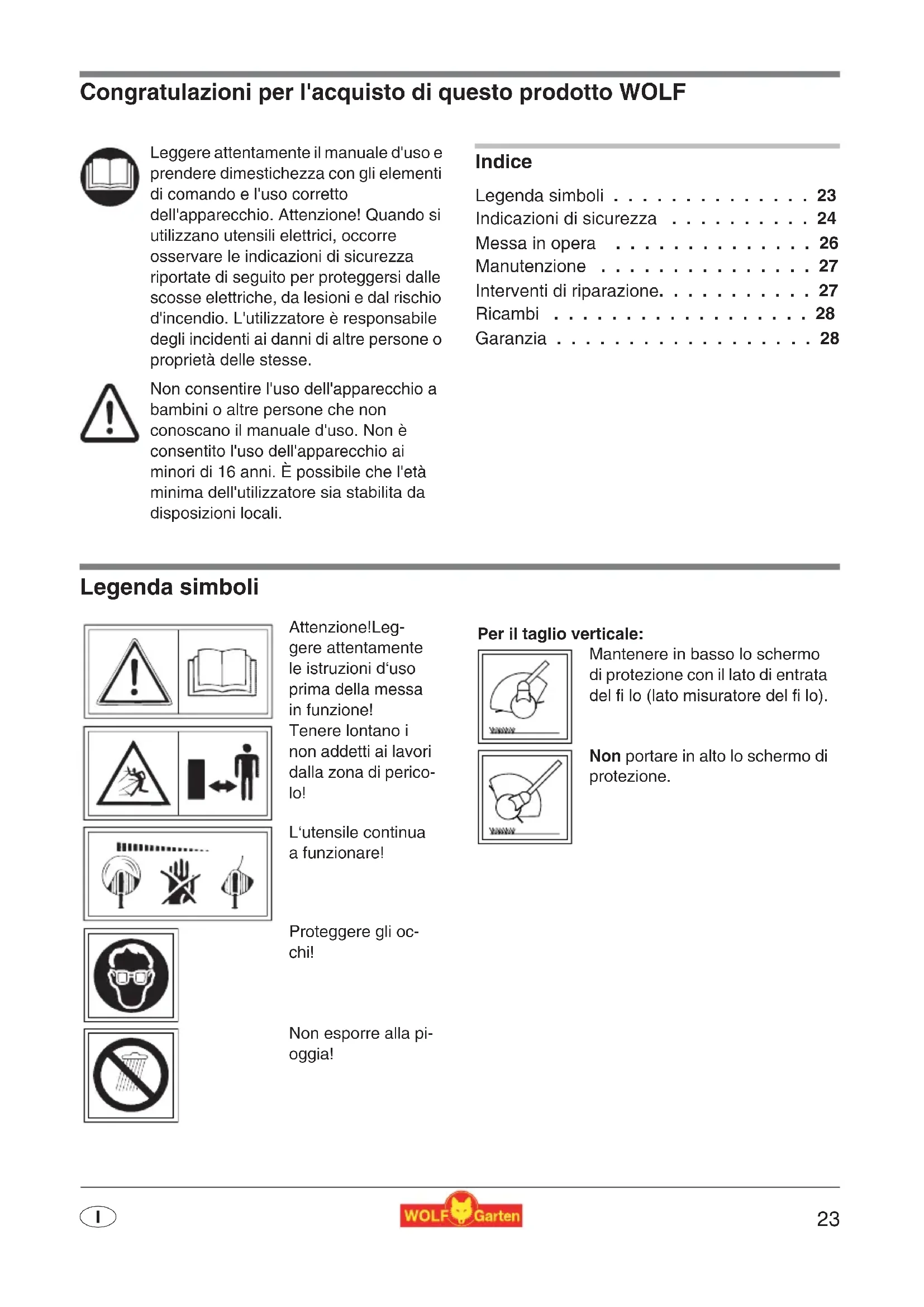 - ICongratulazioni per l'acquisto di questo prodotto WOLF Indice Legenda simboli p. 23