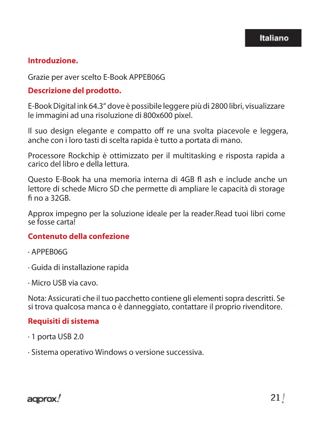APPEB06G - Lettore elettronico Approx - Manuale utente e istruzioni gratuiti
