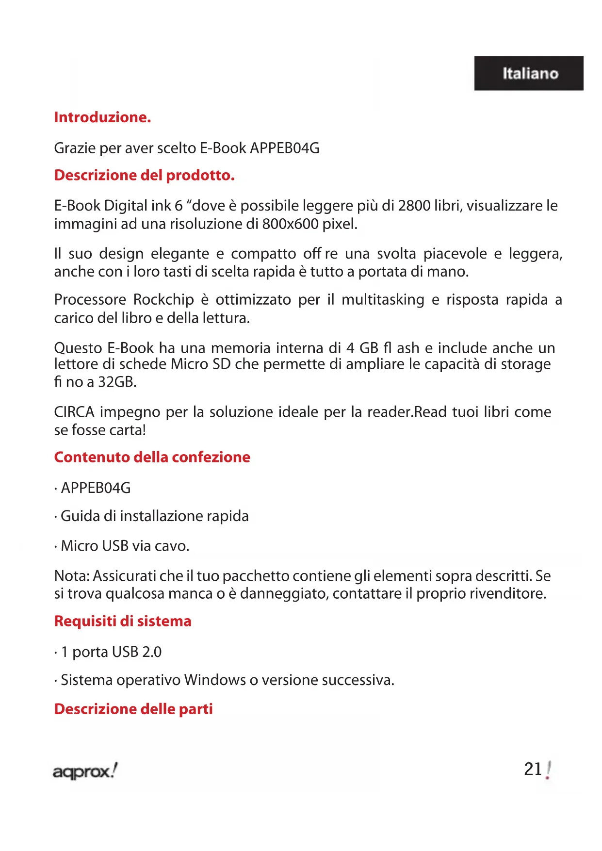 APPEB04G - Lettore elettronico Approx - Manuale utente e istruzioni gratuiti