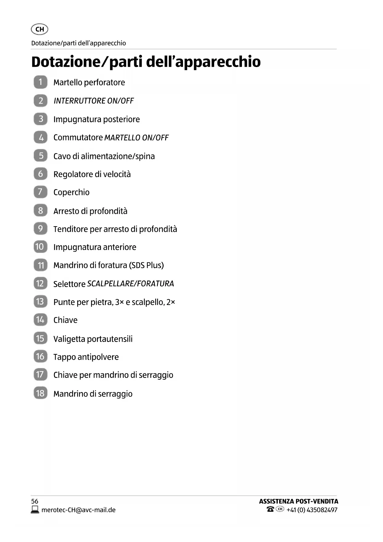 Prima di mettere in funzione il martello perforatore leggere attendamente le istruzioni per l'uso, in particolar modo le note relative alla sicurezza. Il mancato rispetto delle presenti istruzioni per l'uso più provocare ferimenti gravi o danni al martello perforatore.