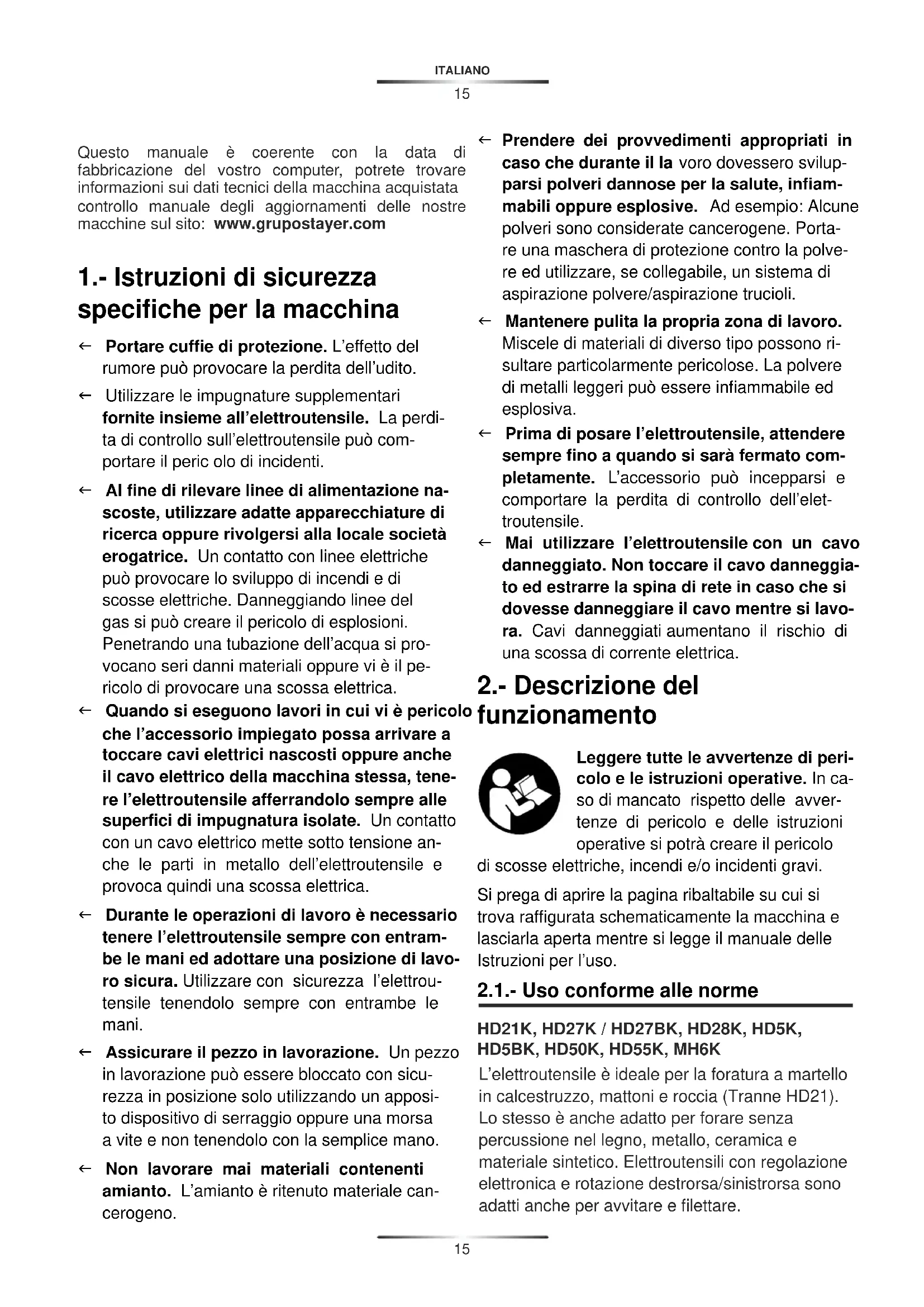 1.- Istruzioni di sicurezza specifiche per la macchina